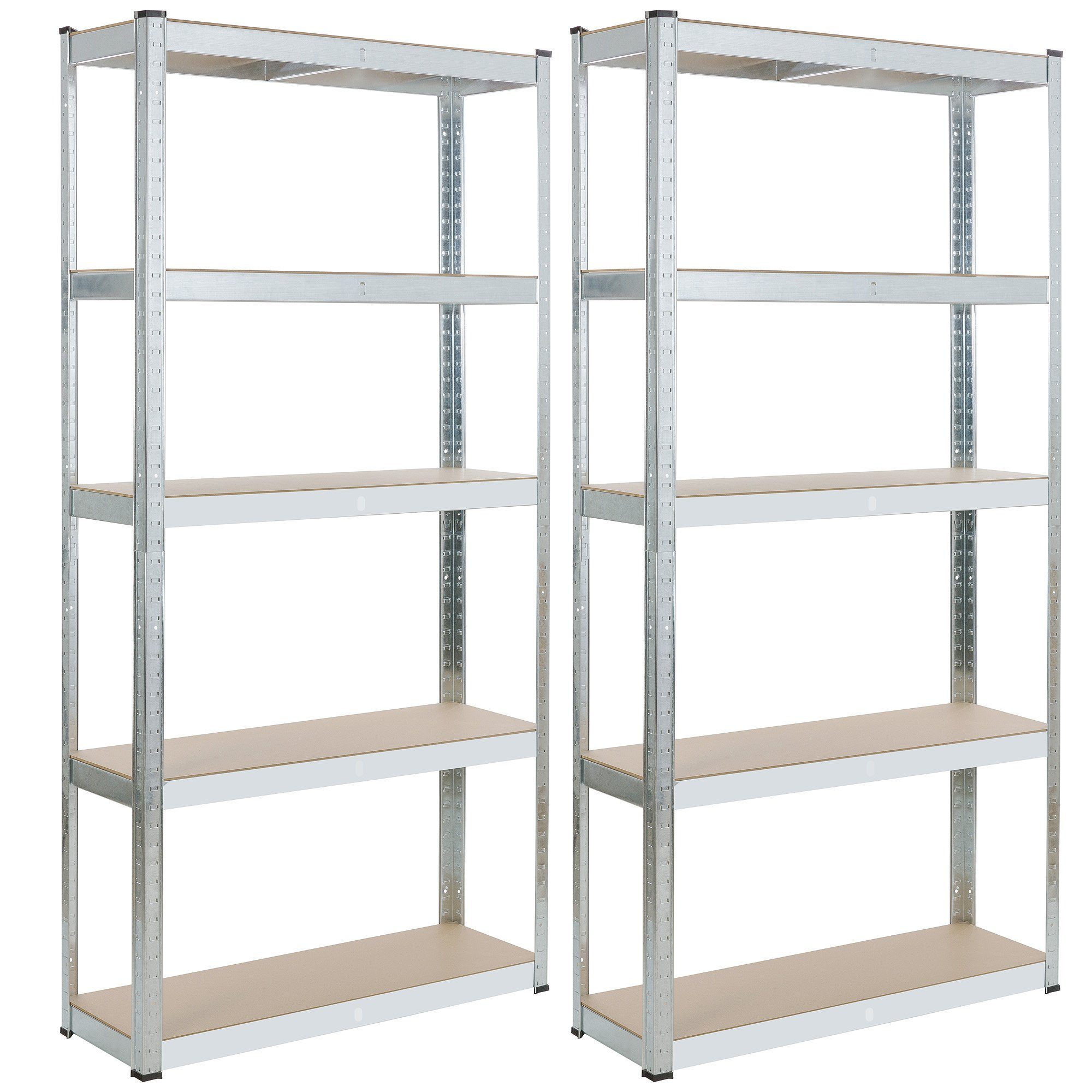 Mit unseren AREBOS Allrounder nutzen Sie die Ecken optimal aus. Das Lagerregal besteht aus hochwertig verzinktem Stahl. Die Streben der Einlegeböden sorgen für hohe Stabilität.