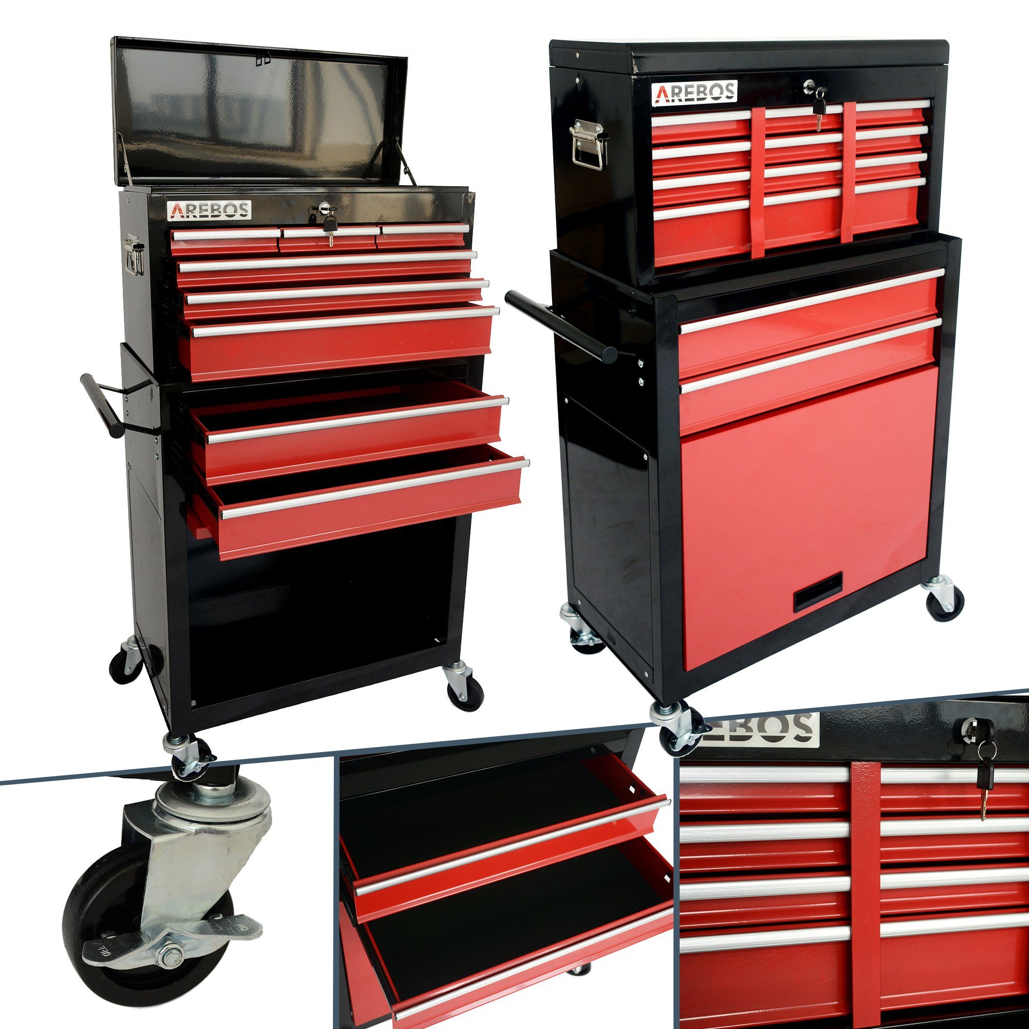 Der AREBOS Werkstattwagen mit 9 Fächern ist der ideale Begleiter für alle, die Ordnung und Effizienz in ihrer Werkstatt schätzen. Mit seinem großzügigen Stauraum bietet er Platz für eine Vielzahl von Werkzeugen und Zubehör, die Sie stets griffbereit haben müssen. Der mobile und abschließbare Kofferaufsatz sorgt dafür, dass Sie Ihr wichtigstes Werkzeug sicher und bequem transportieren können.