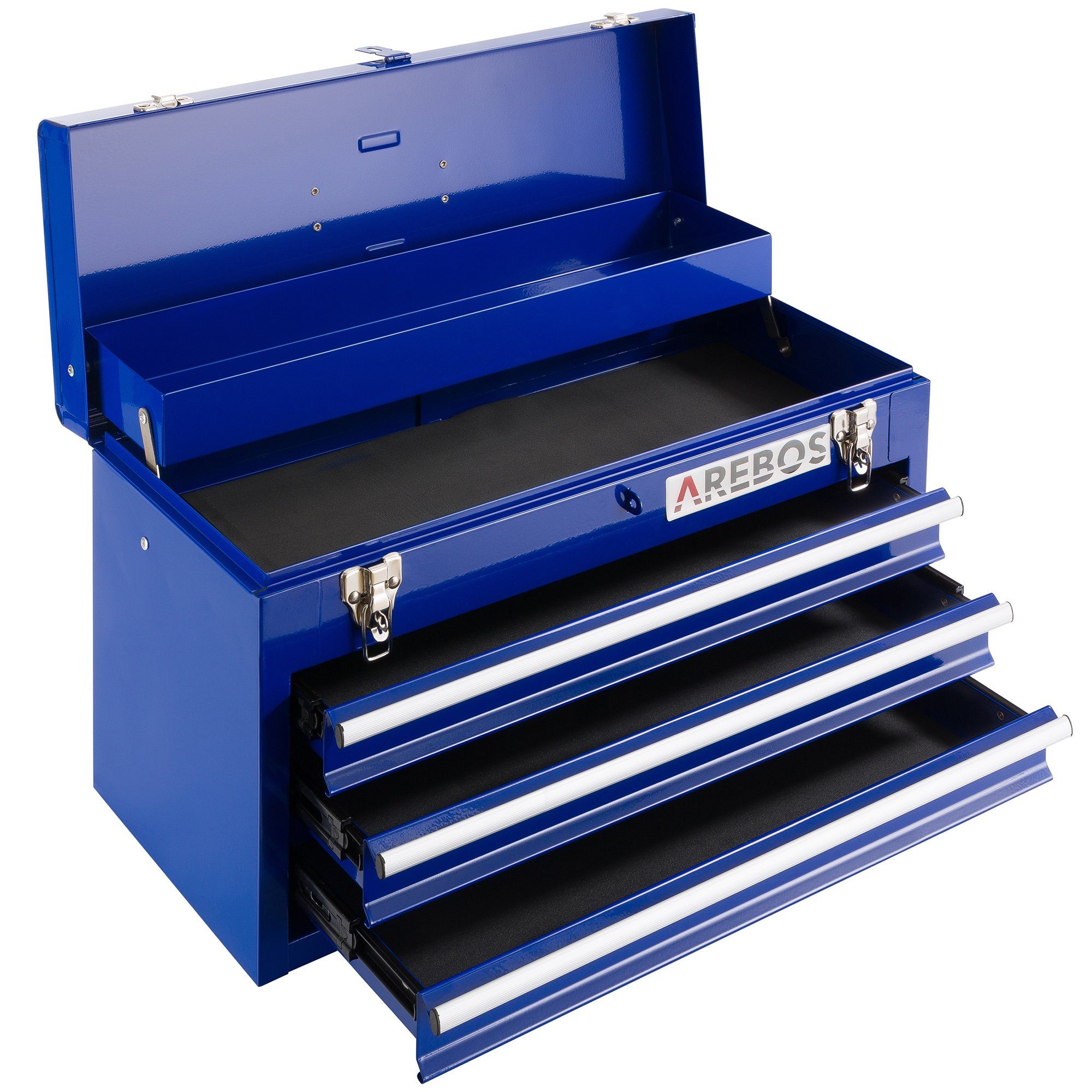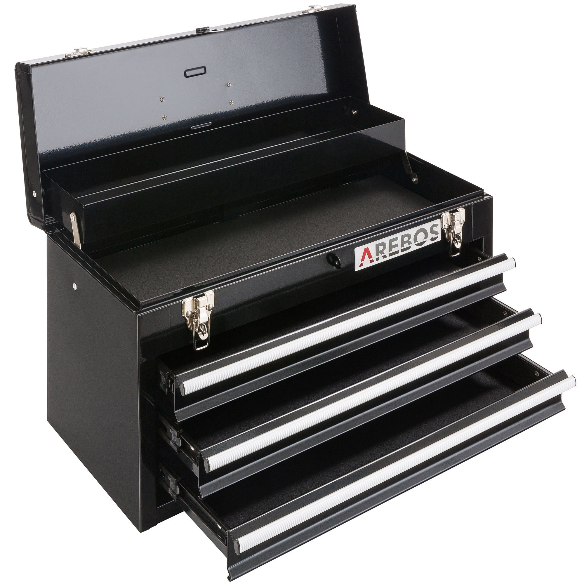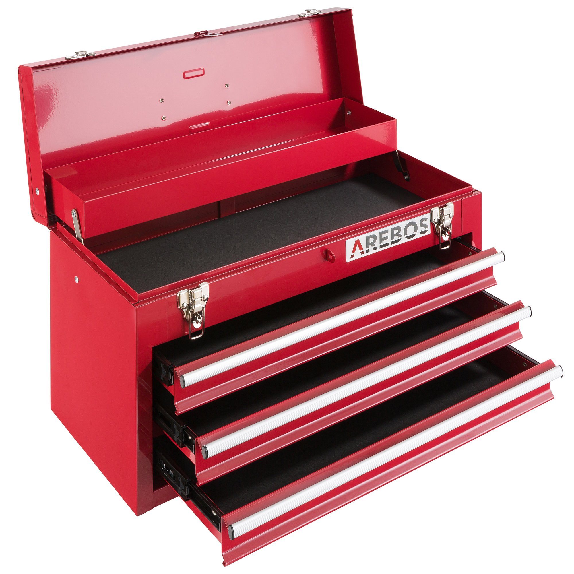 AREBOS Werkzeugkasten mit 3 Schubladen, einem aufklappbaren Fach und Zusatzstaufach im Deckel