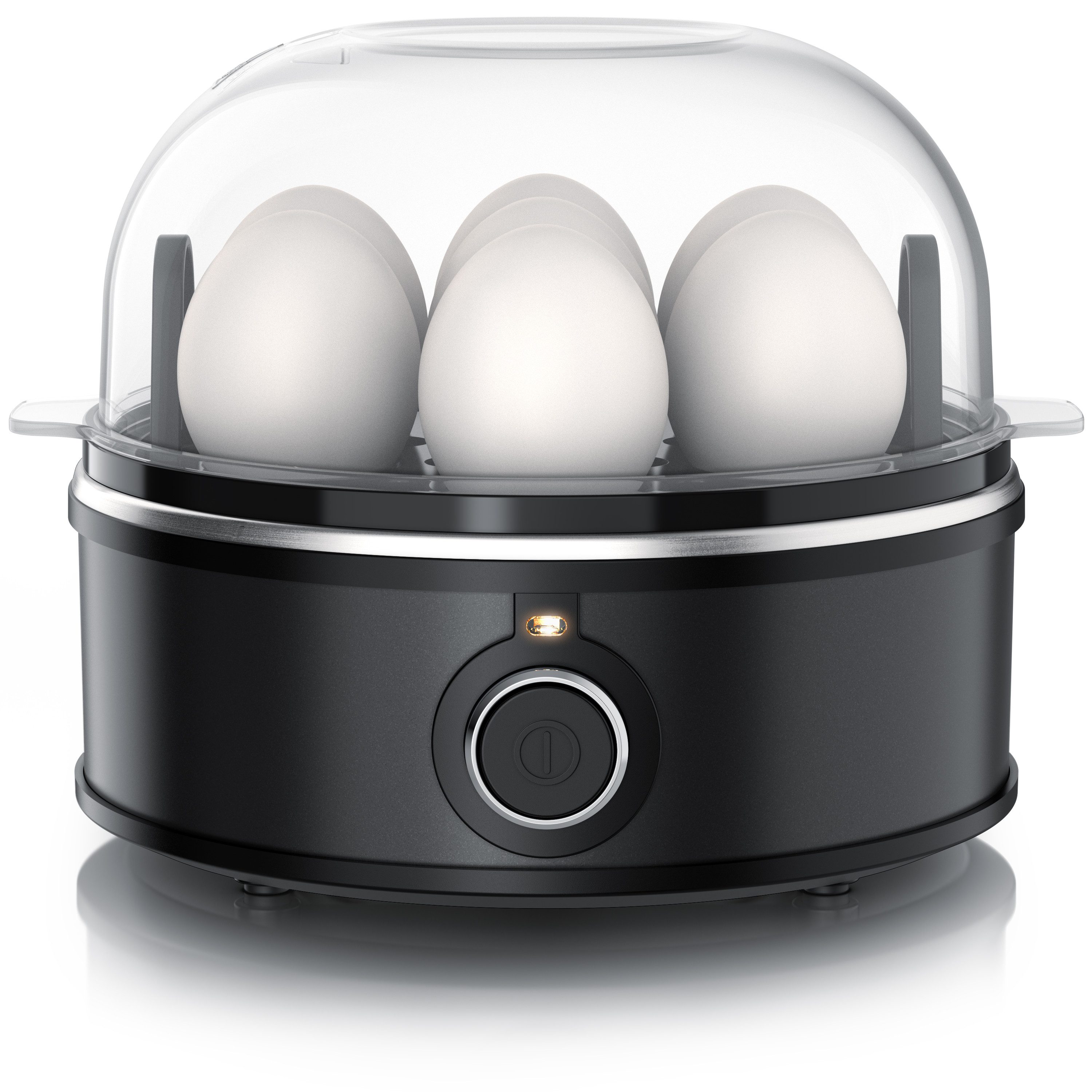 Top-Features | bis zu 7 Eier; Härtegrad weich/mittel/hart; Einsätze für pochierte Eier & Omelette; akustischer Signalton; Edelstahlgehäuse; spülmaschinengeeignete Teile |