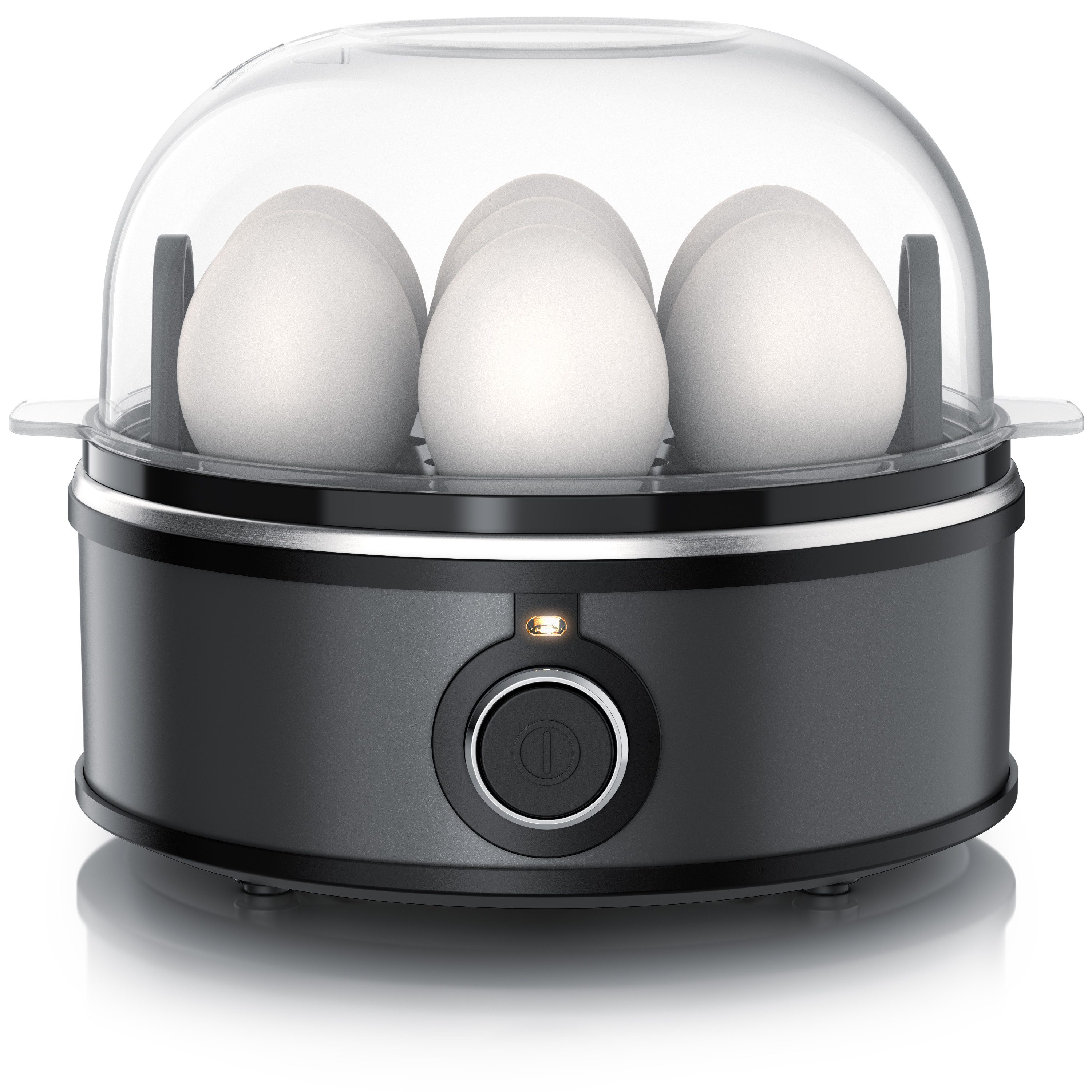 Top-Features | bis zu 7 Eier; Härtegrad weich/mittel/hart; Einsätze für pochierte Eier & Omelette; akustischer Signalton; Edelstahlgehäuse; spülmaschinengeeignete Teile |