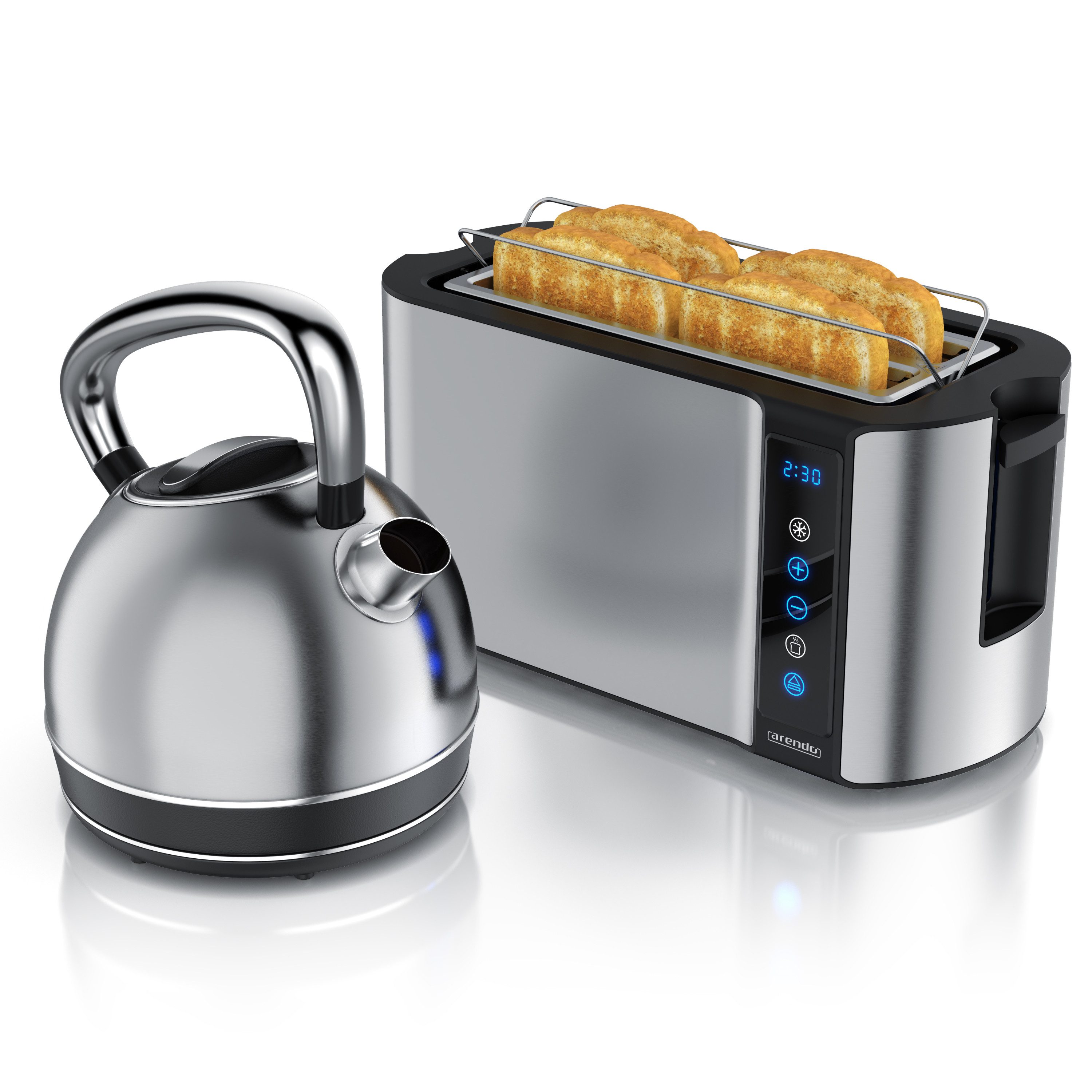 LIEFERUMFANG: Set Arendo VINTAGE Retro Style Edelstahl-Wasserkocher und 4-Scheiben-Langschlitz-