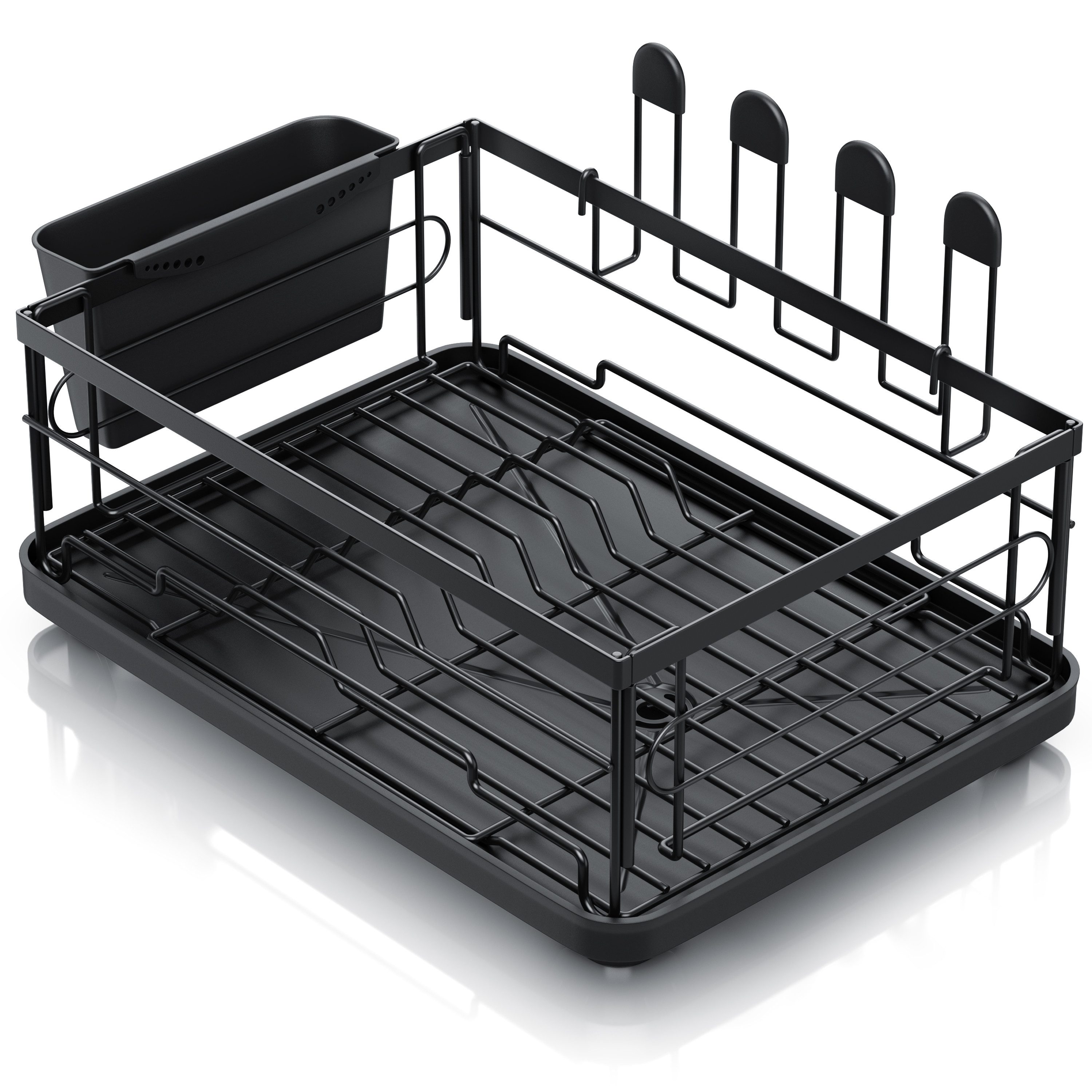 Der große Besteckkorb sorgt für Ordnung und ermöglicht die separate Aufbewahrung von Messern, Gabeln, Löffeln und weiteren Küchenutensilien. Die integrierte Abtropfschale mit selbstentwässerndem Boden leitet das Wasser automatisch zur Mitte und von dort direkt ins Spülbecken, sodass die Arbeitsfläche trocken bleibt. Dank des stabilen, rostfreien Metallgitters ist der Geschirrständer ideal für Teller, Schüsseln, Tassen, Töpfe und Pfannen geeignet.
