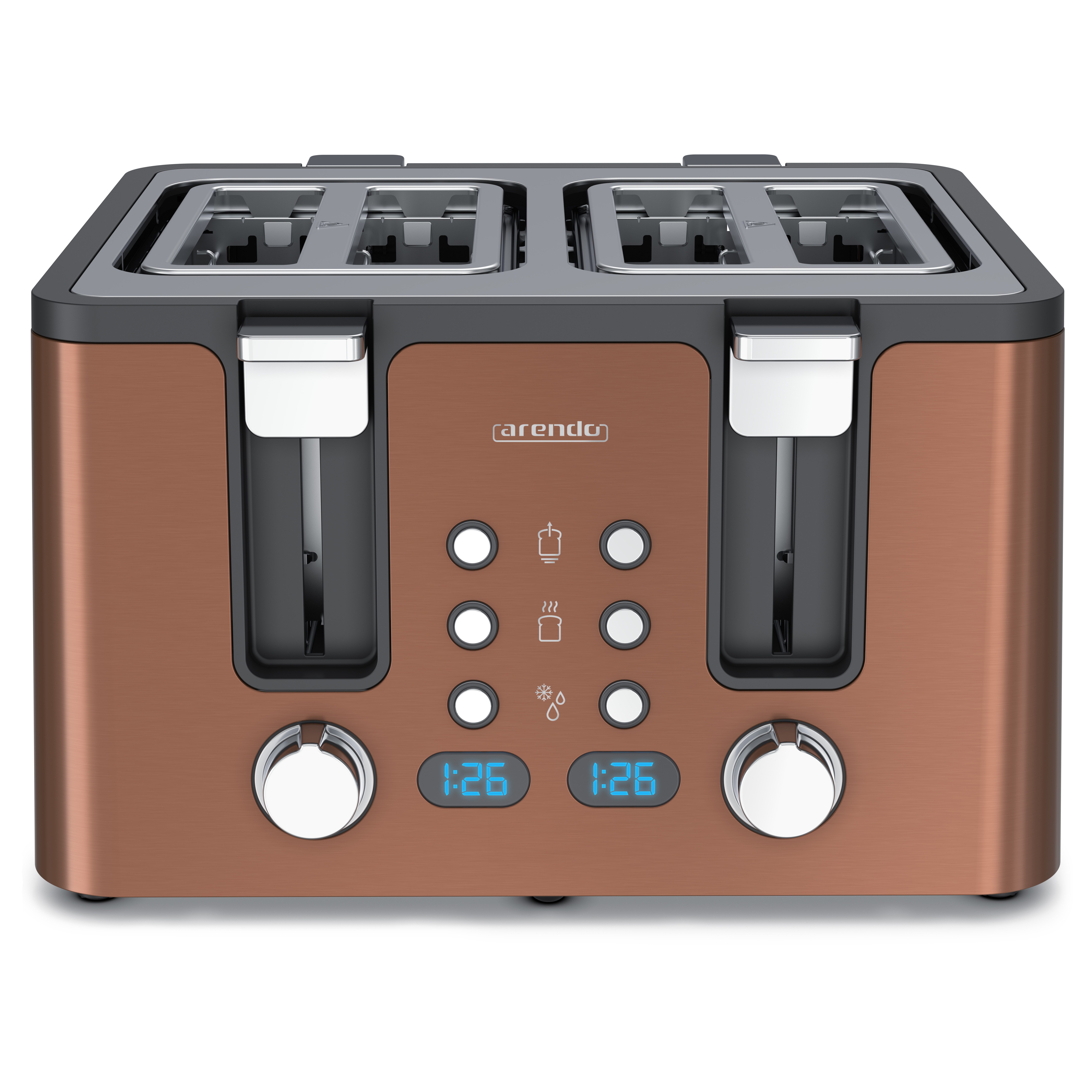 Der MANANA X2 4-fach Toaster begeistert mit robustem Edelstahl-Design und maximalem Komfort. Wählen Sie aus 6 Bräunungsstufen, nutzen Sie die Auftau- und Aufwärmfunktion und behalten Sie dank LED-Display mit Restzeitanzeige immer den Überblick. Ideal für die ganze Familie: Genießen Sie vier gleichmäßig geröstete Toasts pro Toastvorgang. Und dazu kross gebräunte Brötchen mit dem integrierten Brötchenhalter. Nach dem Genuss ist das Gerät dank der glatten Oberfläche im Handumdrehen gereinigt – einfach perfekt für Ihre Küche!