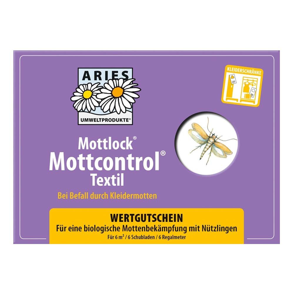 Wertgutschein zur Anforderung von 6 Sendungen à 6 Nützlingskärtchen. Der Nützling gegen Motten ist eine Erzwespe mit dem wissenschaftlichen Namen Trichogramma evanescens. Es handelt sich um winzige Schlupfwespen, die sich auf die Suche nach Motteneiern machen. Diese Schlupfwespen sind 0,4 mm lang, also so klein wie dieser Punkt: . Sie legen ihre Eier in die Eier der Schädlinge. So werden die Motteneier abgetötet und heraus kommen nach etwa 8 bis 10 Tagen kleine, neue Nützlinge. Diese verschwinden, wenn sie keine Motteneier mehr finden. Auf den MOTTCONTROL-Kärtchen befinden sich diese speziell für den Haushalt gezüchteten Nützlinge. Die Kärtchen werden im Kleiderschrank verteilt und es sollte darauf geachtet werden, dass sich diese in der unmittelbaren Nähe der gefährdeten Textilien befinden: denn nur dort legen die Motten ihre Eier ab. In der Regel ist ein Kärtchen ausreichend für ein Regal von einem Meter Breite oder ein abgeschlossenes Schrankfach. Die Nützlinge schlüpfen über einen Zeitraum von ca. 2 Wochen aus den seitlichen Schlitzen der Kärtchen und machen sich sofort auf die Suche nach Motteneiern. Daher bitte die Kärtchen nicht öffnen oder drücken etc. Nach ca. 2 Wochen bekommen Sie weitere, neue Kärtchen zugesandt - diese sind ebenso zu verteilen. Es ist ein Anwendungszeitraum von mehreren Wochen notwendig, da in dieser Zeit die Schädlingsentwicklung vom Ei bis zum Falter stattfinden kann. Da die Nützlinge nur Eier abtöten, müssen solange Kärtchen ausgebracht werden, bis sich alle bereits vorhandenen Raupen und Puppen der Schädlingsmotten zu Faltern entwickelt haben. Die Eier dieser Falter werden dann parasitiert, wodurch die nächste Schädlingsgeneration ausbleibt.