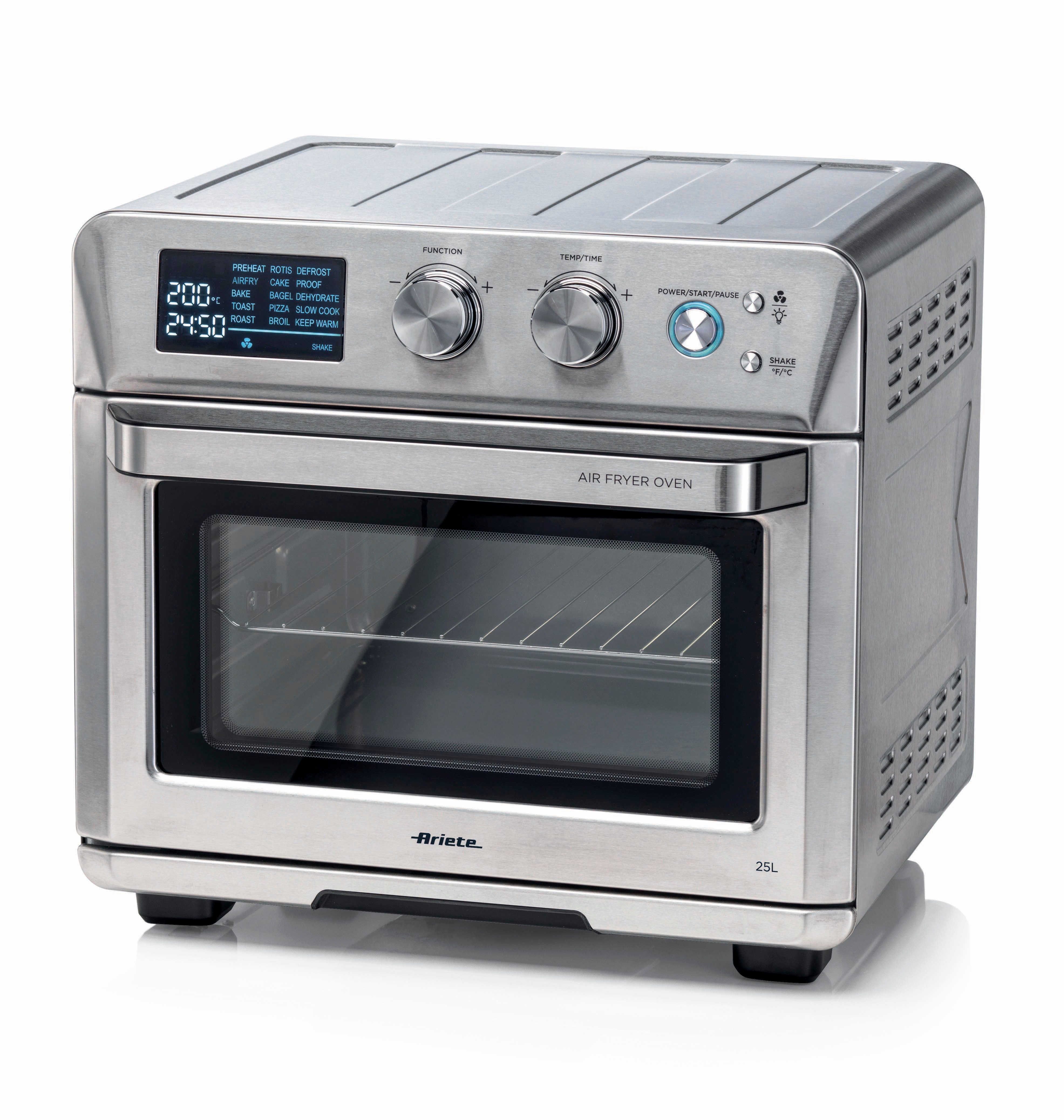 Впередe Vorteile | 15 Programme wie Vorheizen, Überbacken, Toasten, Braten, Rotisserie, Kuchen, Bagel, Pizza, Grillen, Auftauen, Garen, Dörren, Slow Cooking und Warmhalten bieten die Möglichkeit Lebensmittel mit optimalen Einstellungen zuzubereiten. Dank der Drehregler ist die Bedienung ein Kinderspiel – einfach einstellen und loslegen! Die Innenbeleuchtung sorgt dafür, dass Sie Ihre Köstlichkeiten immer im Blick haben. Willkommen in einer Welt, in der Kochen zum Vergnügen wird! Entdecken Sie das Genießen mit unserem Air Fryer/Ofen mit Rotisserie! Verwandeln Sie Ihre Lieblingsgerichte in wahre Gaumenfreuden – lecker, kross und knusprig, und alles mit wenig Fett! Saftiges Hähnchen, knusprige Pommes oder zarte Gemüsespieße - gönnen Sie sich das Beste für Ihre kulinarischen Reise. Frittieren ganz ohne Öl oder nur mit wenig Öl – 80% weniger Fettverbrauch als bei herkömmlichen Fritteusen. Damit wird immer noch den Geschmack von frittierten Speisen genossen, ohne so viel Fett zu konsumieren. Mit Sichtfenster. |