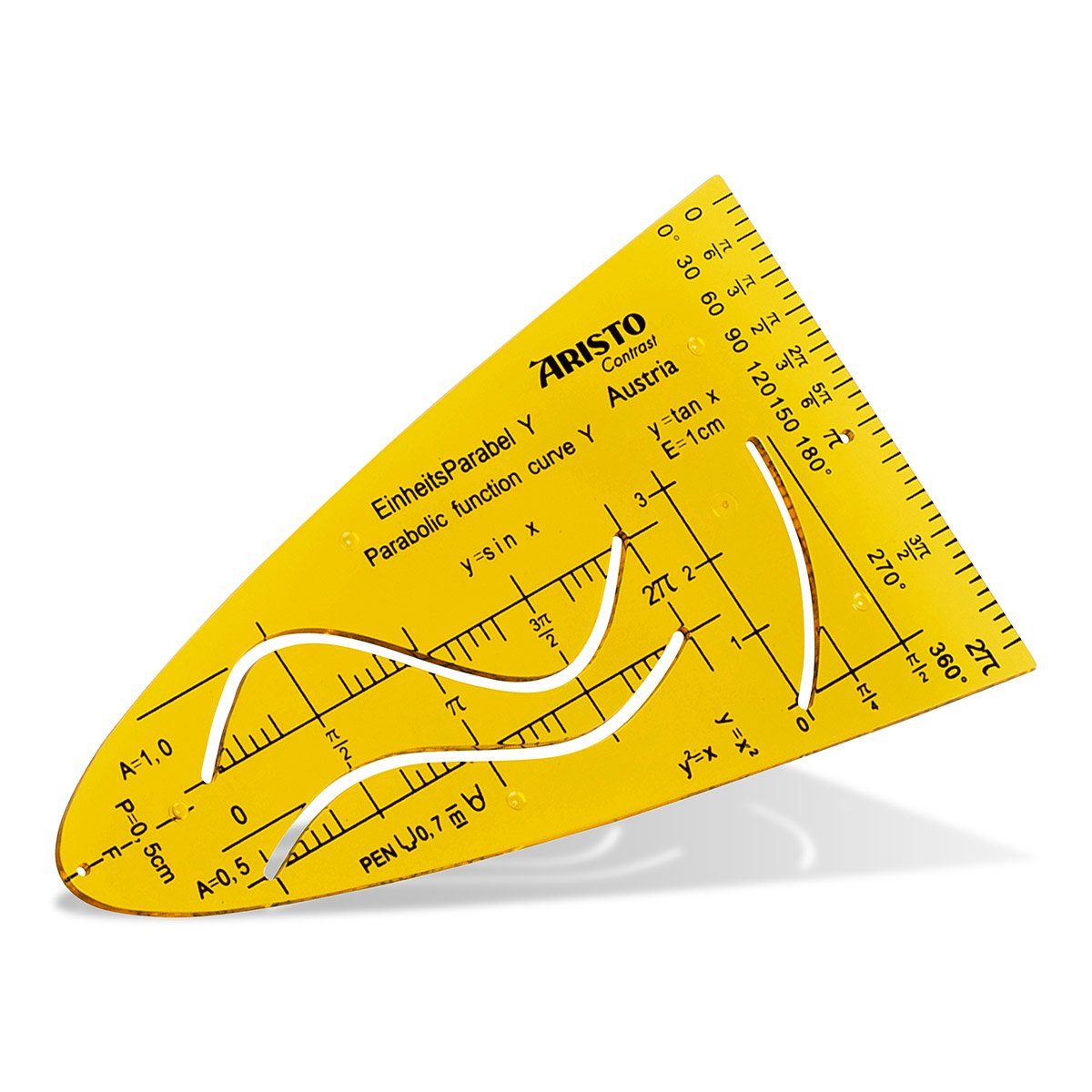 Durch die Verwendung der ARISTO Einheitsparabel Y Schablone können Sie Zeit sparen und genaue Darstellungen von Parabeln und trigonometrischen Funktionen erstellen. Sie eignet sich für mathematische und technische Anwendungen sowie für den Einsatz in Schulen, Universitäten und anderen Bildungseinrichtungen.
