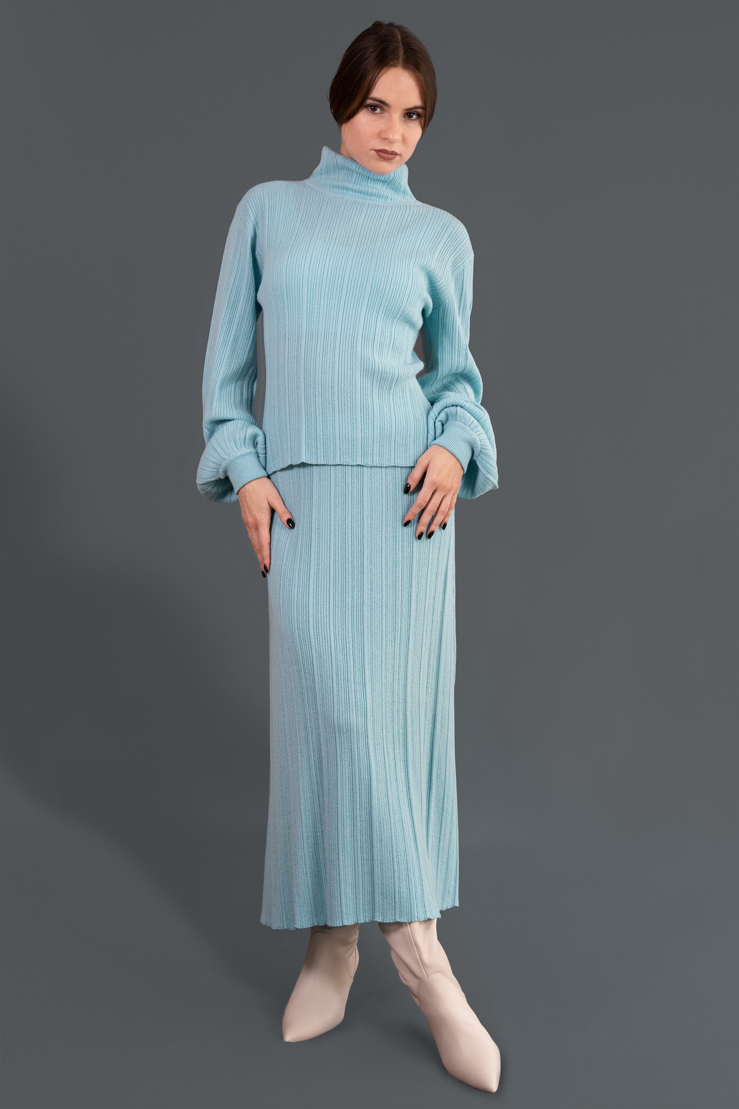 Luxuriöse Knitwear für modebewusste und selbstbestimmte Damen. Lassen Sie sich mit den Fashion-Highlights des Luxuslabels „Anna“ verzaubern. Die aufregende und einzigartige Abendmode für ganz besondere Anlässe. Verzaubern Sie den Abend mit unserem Twinset-Sweater, der für die besonderen Momente im Leben geschaffen wurde. Das subtile Rippstrickmuster des Sweaters verleiht ihm eine besondere Tiefe, während der luxuriöse 100% reine Kaschmir für eine unvergleichliche Weichheit und Wärme sorgt. Der elegante Rollkragen setzt ein modisches Statement, während die Ballonärmel einen Hauch von Drama und Romantik hinzufügen. Der figurbetonte Schnitt unterstreicht die Weiblichkeit und bietet dennoch genügend Komfort, dank der hochwertigen Verarbeitung. In faszinierenden Farben, ob in einem leuchtenden Cyan-Türkis oder einem makellosen Weiß, wird dieser Sweater sicherlich zum Mittelpunkt jedes Abendoutfits. Betören Sie den Abend mit unserem Twinset-Rock, der speziell für Damen und Abendanlässe entworfen wurde. Das raffinierte Rippstrickmuster verschafft dem Rock eine exquisite Textur, während der 100% reine Kaschmir ein Gefühl von Luxus und unvergleichlichem Komfort bietet. Der Rock in A-Linie schmeichelt Ihrer Figur und bietet durch seine hochwertige Verarbeitung sowohl Eleganz als auch Langlebigkeit. Sein figurbetonter Schnitt setzt Ihre Silhouette perfekt in Szene, ohne dabei den Komfort zu vernachlässigen. Ob in einem hypnotisierenden Cyantürkis oder in einem reinen und makellosen Weiß – dieser Rock ist die perfekte Ergänzung zu Ihrem Abendoutfit. Ein absolutes Must-Have für die Dame, die sowohl Stil als auch Qualität schätzt. Ein wahres Meisterwerk für die modebewusste Frau, die sich nicht mit weniger als Perfektion zufrieden gibt.