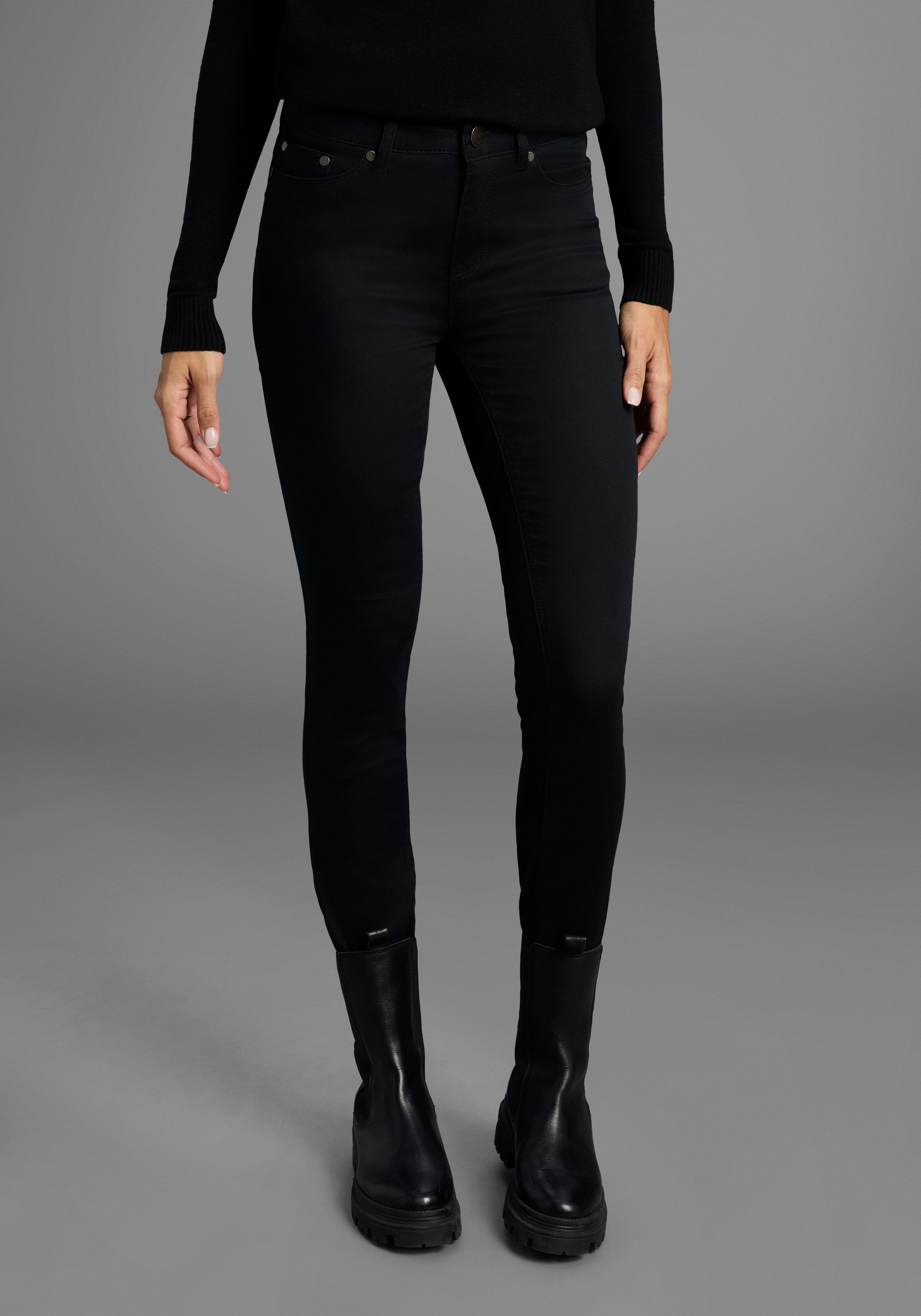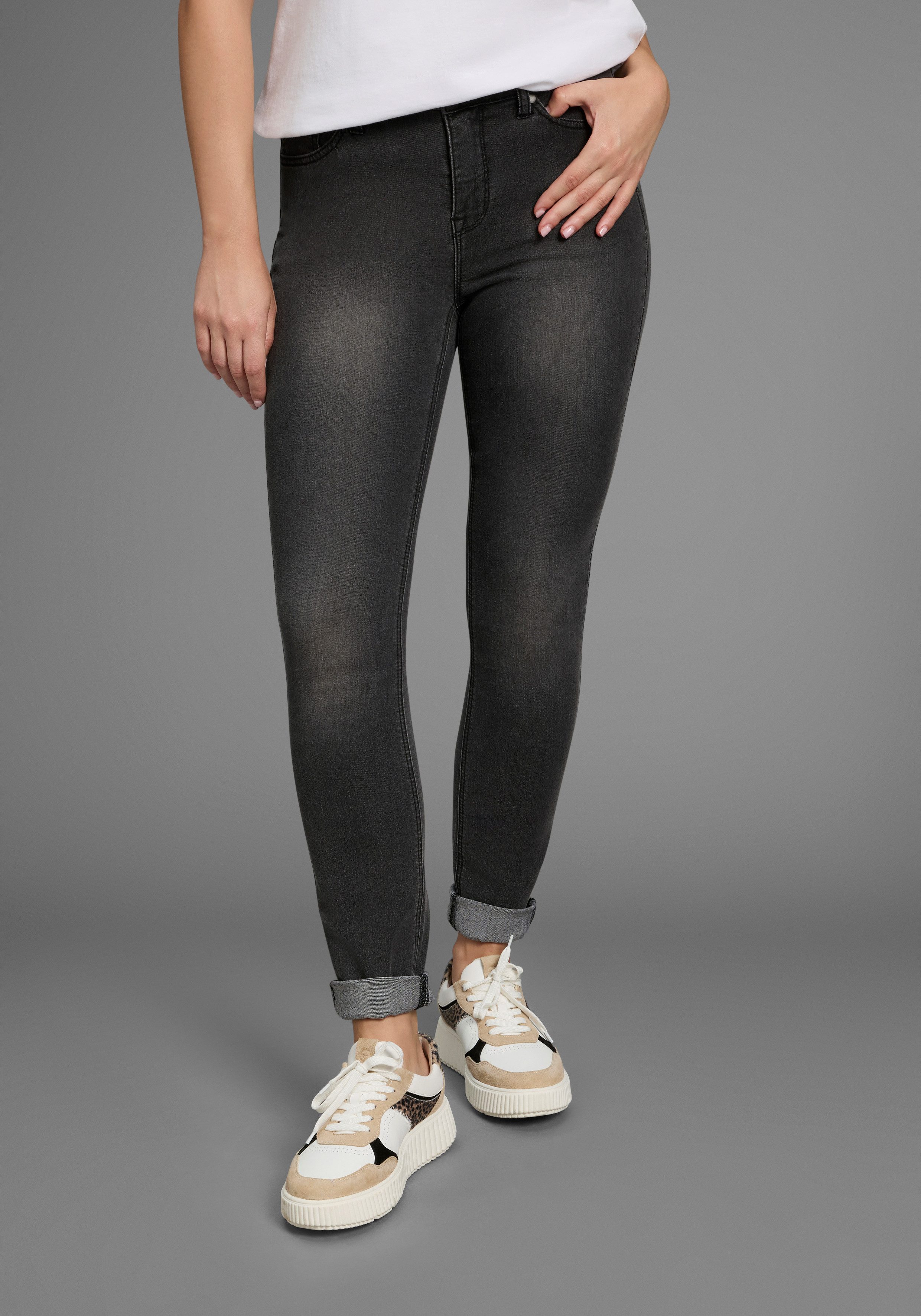 Besondere Merkmale | enge Passform, Röhrenjeans, Used-Look-Waschung, hohe Leibhöhe |