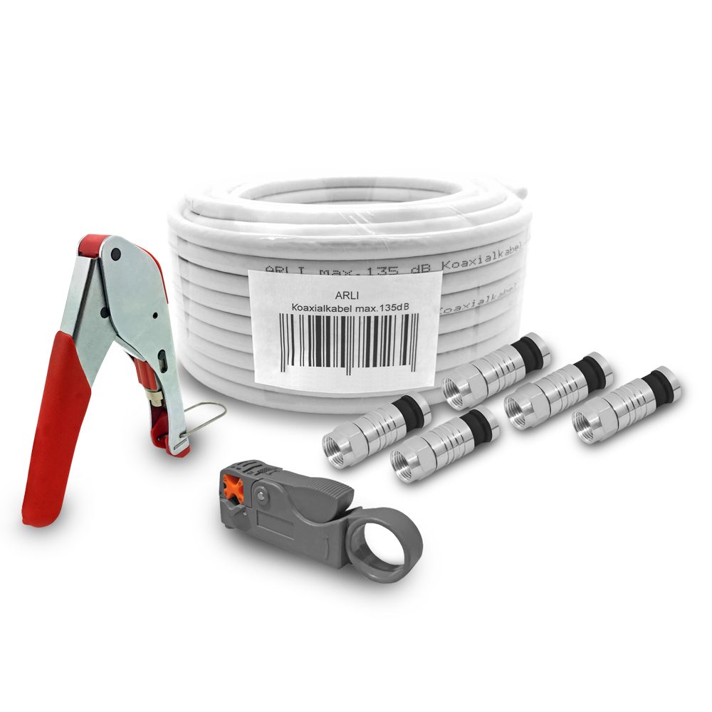 Der hochwertiger F-Kompressionsstecker wird auf das Kabel aufgesteckt und mit einer Crimzange wasserdicht durch eine Steck/-Klemmtechnik mit dem Kabel verbunden. Geeignet für Koaxialkabel von Ø7,0 bis Ø7,5 mm.