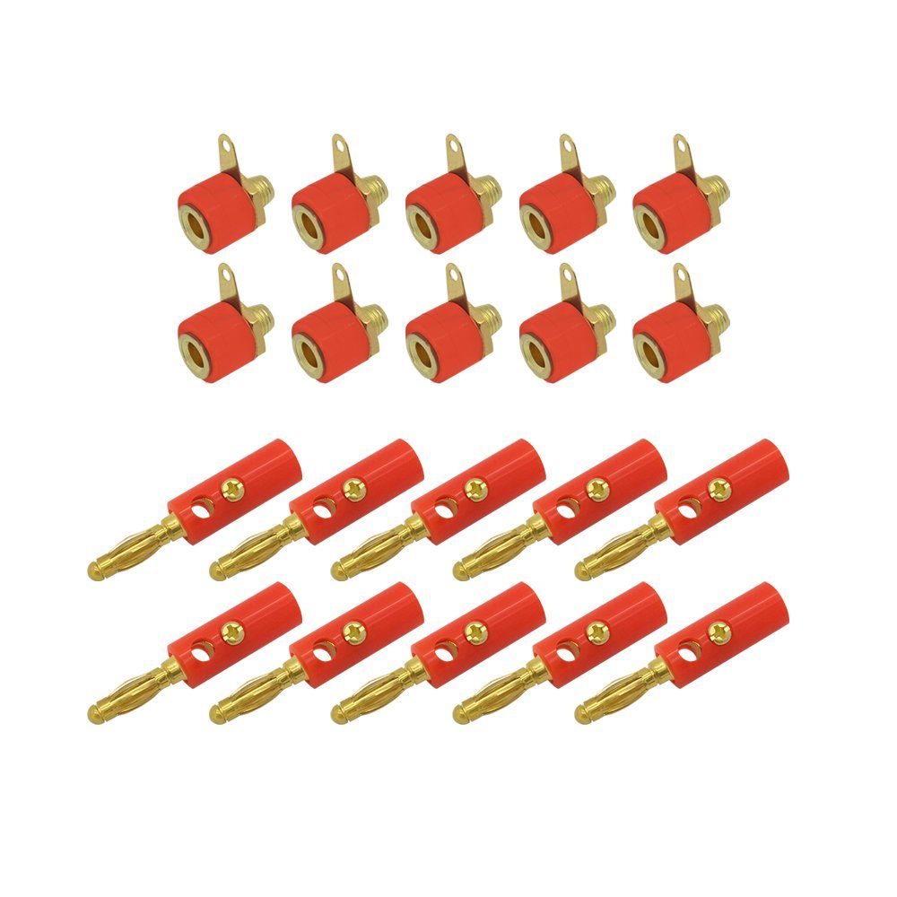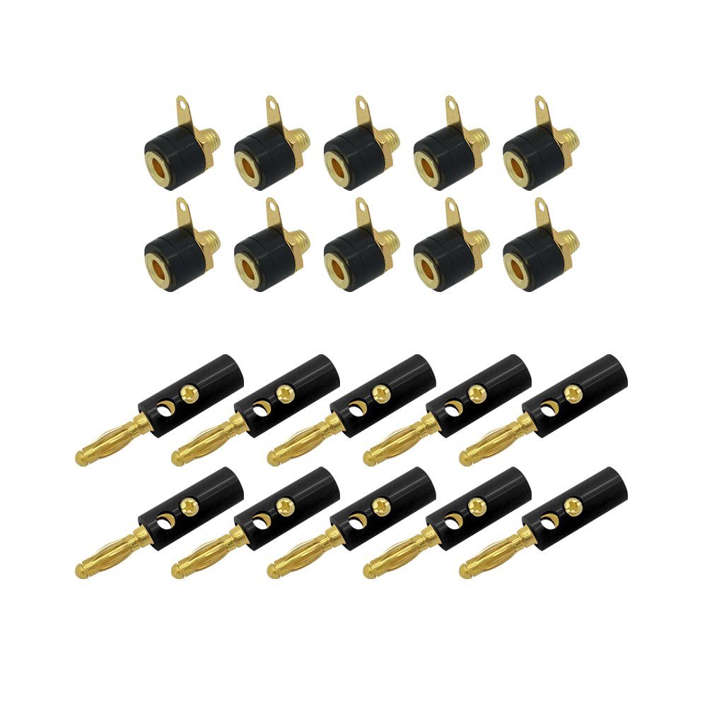 Lieferumfang | 10x Bananenstecker schwarz + 10x Bananenbuchse mit Lötfahne vergoldet 4 mm |