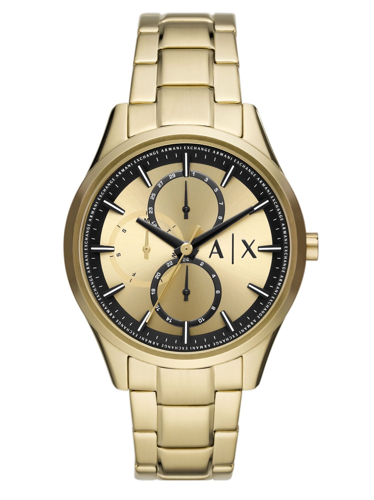 Armani Exchange Uhren stehen für einen jungen, lässigen Look mit dem gewissen Extra an Raffinesse. Sie sind stylish, vielseitig und verleihen deinem Outfit das gewisse Etwas – perfekt für alle, die Modebewusstsein mit italienischem Flair verbinden möchten. Du willst mehr, als nur die Zeit ablesen? Dann bist du mit dieser sportlich-schicken Multifunktionsuhr für Männer mit Edelstahl-Gehäuse gut beraten! Das Edelstahl-Armband ist nicht nur für einen sportlich-eleganten Look verantwortlich, sondern auch überaus robust. An das silberne Gehäuse der Armani Exchange AX1865 schließt sich ein Armband in Bicolor an, das schwarze Ziffernblatt vollendet das Farb-Design. Ob du ein schmales oder breiteres Handgelenk hast, ist egal: Das runde Gehäuse mit einem Durchmesser von 42 mm sieht definitiv an jedem Arm gut aus. Das integrierte Quarzwerk garantiert zuverlässige Präzision. Durch die drei Hilfsziffernblätter bekommt das Design der Multifunktionsuhr einen coolen Chronographen-Look. Das Uhrenglas aus Mineralglas bietet eine klare Sicht und hält problemlos den gewöhnlichen Strapazen im Alltag stand. Mit einer Wasserdichte von bis zu 50 Metern (5 Bar) ist dieser Zeitmesser ein zuverlässiger Begleiter, da er sowohl beim Händewaschen als auch beim Baden getragen werden kann. Die Klappschließe des Armbands ist einfach zu handhaben und sorgt für sicheren Halt. Kurzum: Die Armani Exchange AX1865 Herrenuhr ist besonders chic und präzise gefertigt – die perfekte Wahl für alle, die ein zuverlässiges Fashion-Statement fürs Handgelenk suchen.