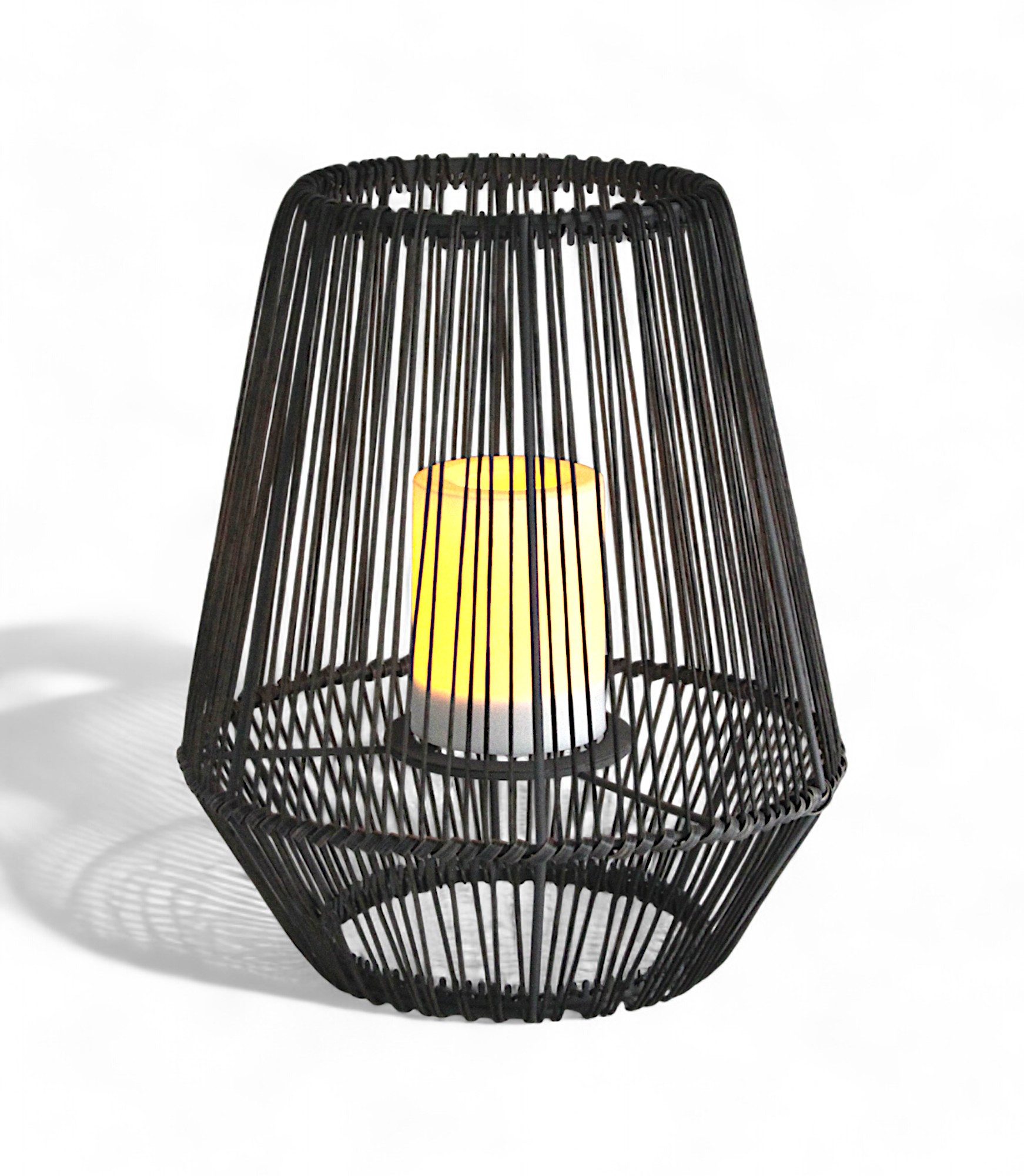 Diese stilvolle Laterne in Rattan-Optik wurde aus Metall und Polyratten hergestellt. Das besondere Design in Kombination mit der Solarlaterne, zaubert eine gemütliche Atmosphäre auf Ihrer Terrasse oder Balkon. Ideal als Tischlicht oder Stehlampe