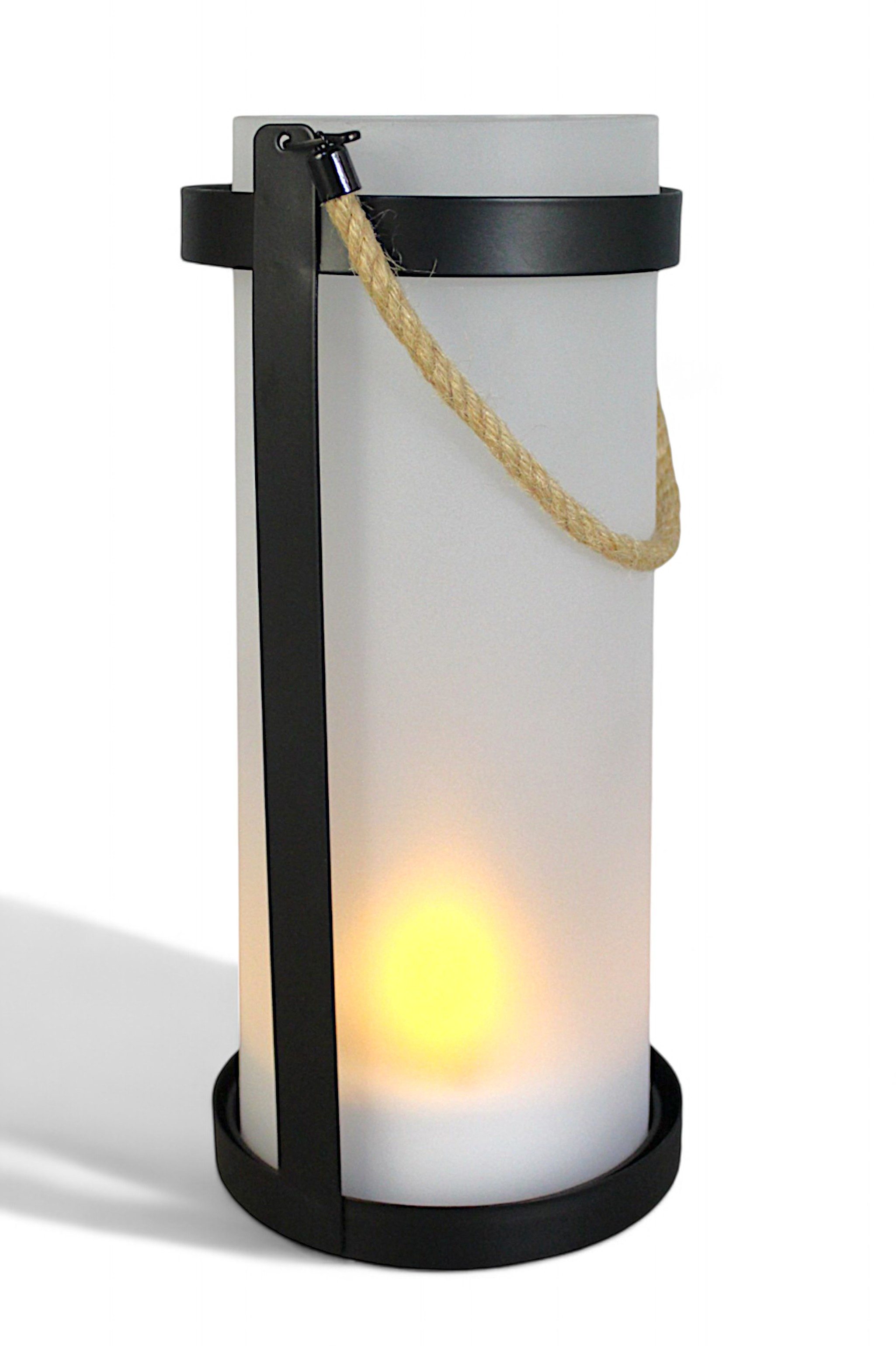 Diese schöne Solar-Laterne besteht aus Metall, Glas und einem Griff aus Seil. Die LED Laterne ist mit einem hochwertigen Effekt-LED-Modul ausgestattet. Ganze 36 micro LED's erzeugen ein sehr realistisches Flammenbild.