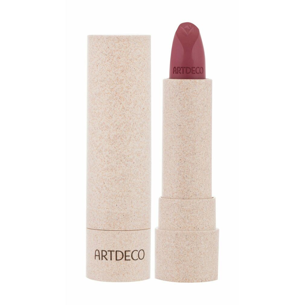 Kombiniere die Power der Natur mit den Must-haves eines modernen Lippenstiftes! Der Natural Cream Lipstick überzeugt nicht nur mit seiner Perfomance, sondern auch mit seinen Inhaltsstoffen und dem Packaging. Die Textur enthält mindestens 80 % Inhaltsstoffe natürlichen Ursprungs.* Das leichte, hautpflegende Öl Caprylic/Capric Triglyceride und 100 % natürliches Candelillawachs verleihen Deinen Lippen ein samtweiches Gefühl. Die Hautverträglichkeit des Lippenstiftes ist dermatologisch bestätigt, sodass Du den Lippenstift bedenkenlos auf empfindlichen Lippen anwenden kannst. Dank der cremigen Textur gleitet der Lippenstift sanft über Deine Lippen und lässt sie weich und gepflegt aussehen. Auch auf eine hohe Farbintensität musst Du nicht verzichten. Pigmente aus mineralischem Ursprung ermöglichen zart glänzende Farbintensität in nur einem Auftrag. Verleihe Deinen Lippen ein optisch ebenmäßiges und ausgeglichenes Erscheinungsbild für naturschöne Lippen!Die wichtigsten Inhaltsstoffe und ihre Wirkung: - Caprylic/Capric Triglyceride ist ein natürliches, hautpflegendes Öl , welches die Haut nachhaltig mit wertvollen Lipiden (Fetten) versorgt - Candelillawachs sorgt für samtweiche, gepflegte Lippen bei täglicher Anwendung - Pigmente aus mineralischem Ursprung sind nicht lösliche Farbmittel, die durch das Zermahlen von Mineralien gewonnen werden sowie für eine glänzende Farbintensität sorgen - Konservierungsstoffe schützen die Produktperformance, um eine längere Haltbarkeit garantieren zu können - Frei von Mineralölen, Parabenen, Silikonen, PEG/-Verbindungen, Talc, GMO (genmanipulierten Organismen) - Vegan (ohne Inhaltsstoffe tierischen Ursprungs) Packaging: Das Packaging besteht aus минимум 40 % Reishülsenpulver, welches recycelbar und somit zu 100 % umweltverträglich ist.Faltschachtel: ARTDECO hat sich bewusst für Papier aus nachhaltiger Forstwirtschaft entschieden, welches aus verantwortungsvoll bewirtschafteten Wäldern und Plantagen stammt.* Um die Transparenz für die Kunden zu erhöhen, verzichten wir bewusst darauf, den in den Produkten enthaltenen Wasseranteil als Teil der natürlichen Inhaltsstoffe anzugeben. Die ausgelobten Prozentzahlen an Inhaltsstoffen natürlichen Ursprungs sind daher explizit ohne Wasser und basieren größtenteils auf Pflanzen und Mineralien. Die verbleibenden 20 % tragen dazu bei, die hervorragende Leistung und die Haltbarkeit des Produkts zu gewährleisten.