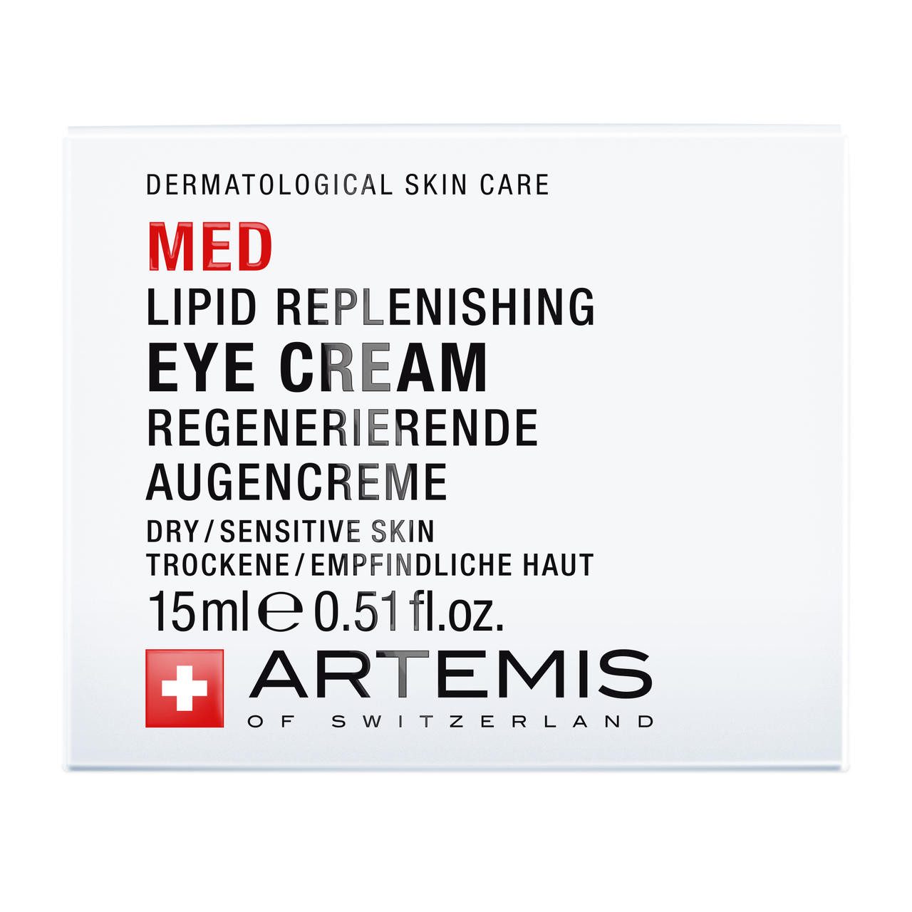 Die reichhaltige Lipid Replenishing Eye Cream* beruhigt die empfindliche Augenpartie. Die allergen optimierte Rezeptur mildert Spannungsgefühle, schützt vor Umweltschäden und fördert die Zellregeneration. Die Haut ist optimal mit Feuchtigkeit versorgt, erscheint sichtbar geglättet und erholt. *Angereichert mit dem ARTEMIS-exklusiven Anti-Irritation-Komplex\u00ae, dem tiefenwirksamen Pflegecoach. \u2022 Всеrgieoptimierte Parfümierung \u2022 Frei von Alkohol \u2022 Frei von PEG \u2022 Frei von Parabenen \u2022 Frei von Silikonen \u2022 Frei von Nanomaterialien \u2022 Frei von Farbstoffen \r Empfindliche Haut ist angreifbar und kann auf äußere und innere Stresseinflüsse spontan mit Irritationen reagieren. ARTEMIS of Switzerland hat in enger Zusammenarbeit mit führenden Dermatologen eine Pflegelinie entwickelt, die auf alles Belastende verzichtet und sich auf das absolut Notwendige konzentriert \u2013 ARTEMIS MED wirkt nach der \u201eWeniger ist mehr\-Philosophie. ARTEMIS MED orientiert sich an den Hautzuständen und nicht an Hauttypen. Im Kern der Rezepturen wirkt der Anti-Irritation-Komplex\u00ae mit vier ausgesuchten Inhaltsstoffen: Edelweiß schützt als hocheffektiver Radikalfänger vor schädlichen Umwelteinflüssen. Allantoin verbessert das Feuchthaltevermögen der Haut. Panthenol stärkt nachweislich die Barrierefunktion der Haut. Tetrapeptid mildert entzündungsbedingte Hautrötungen und verbessert die Festigkeit und die Elastizität der Haut. ARTEMIS MED bedeutet: höchste Reinheit und höchste Wirksamkeit! Die regenerierende Augencreme versorgt die Haut gezielt mit allem, was sie braucht: Jojobaöl glättet die Haut und erhöht ihr Rückhaltevermögen für Feuchtigkeit. Sheabutter vermindert die Hauttrockenheit. Hyaluronsäure glättet Trockenheitsfältchen und polstert die Haut auf. Der ARTEMIS- exklusive Anti-Irritation-Komplex\u00ae verstärkt die Wirkung: Im perfekten Zusammenspiel schützen die puren Wirkstoffe gegen Stress und schädliche Umwelteinflüsse, optimieren die Feuchtigkeitsversorgung und beugen entzündungsbedingten Reaktionen vor. \u2022 Всеrgieoptimierte Parfümierung \u2022 Frei von Alkohol \u2022 Frei von PEG \u2022 Frei von Parabenen \u2022 Frei von Silikonen \u2022 Frei von Nanomaterialien \u2022 Frei von Farbstoffen ERGEBNIS: Spannungsgefühle werden reduziert.Die Haut um die Augen wirkt erholt und geglättet. Bei regelmäßiger Anwendung beruhigt sich die Haut zunehmend, sie bleibt elastisch und geschmeidig.
