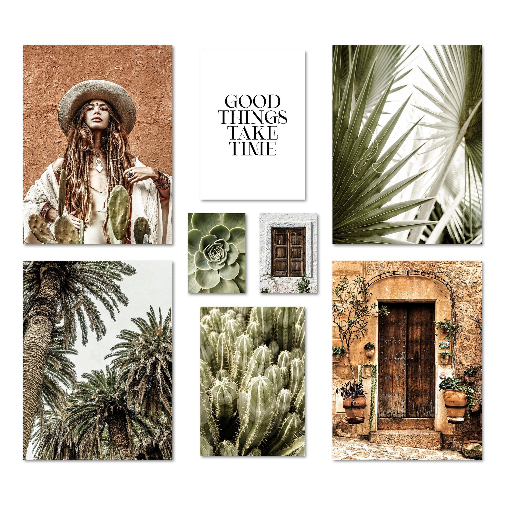 Die Farbpalette aus Terracotta und Grün verleiht diesen Motiven eine natürliche und gleichzeitig lebendige Ausstrahlung. Das Spruch-Poster "good things take time" erinnert dich daran, dass die besten Dinge im Leben Zeit brauchen.