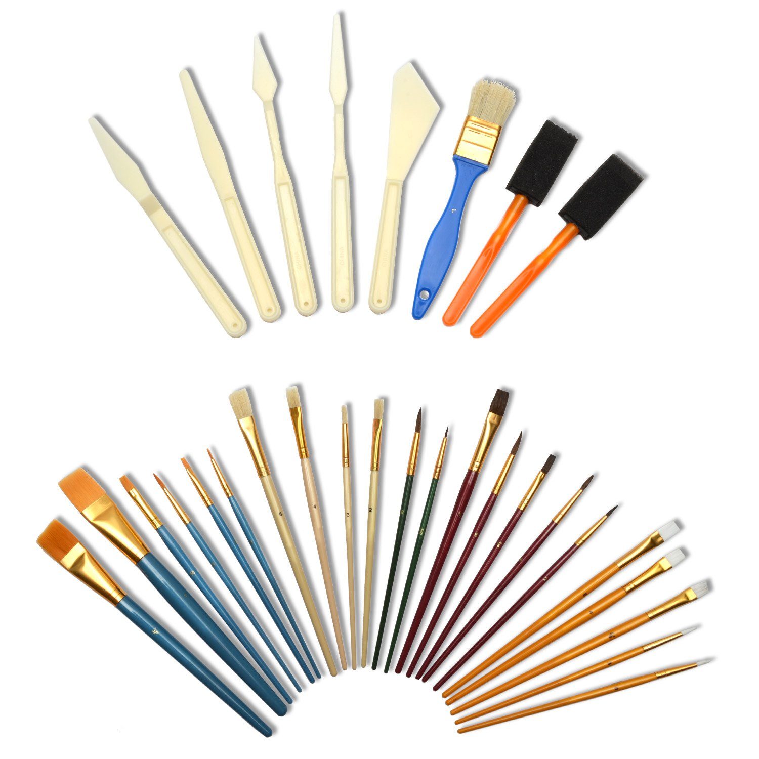 Das Artina Pinsel Set besteht aus 30 verschiedenen Pinseln. Darunter befinden sich sowohl Borstenpinsel als auch Haarpinsel und Schwammpinsel. Was Sie auch vorhaben, mit diesem Malpinsel-Set ist es möglich!