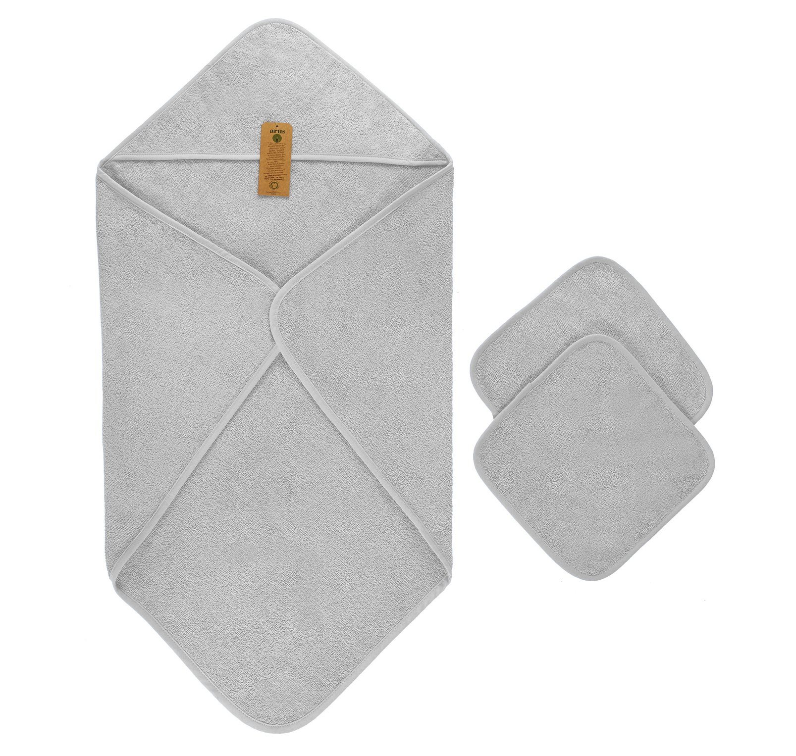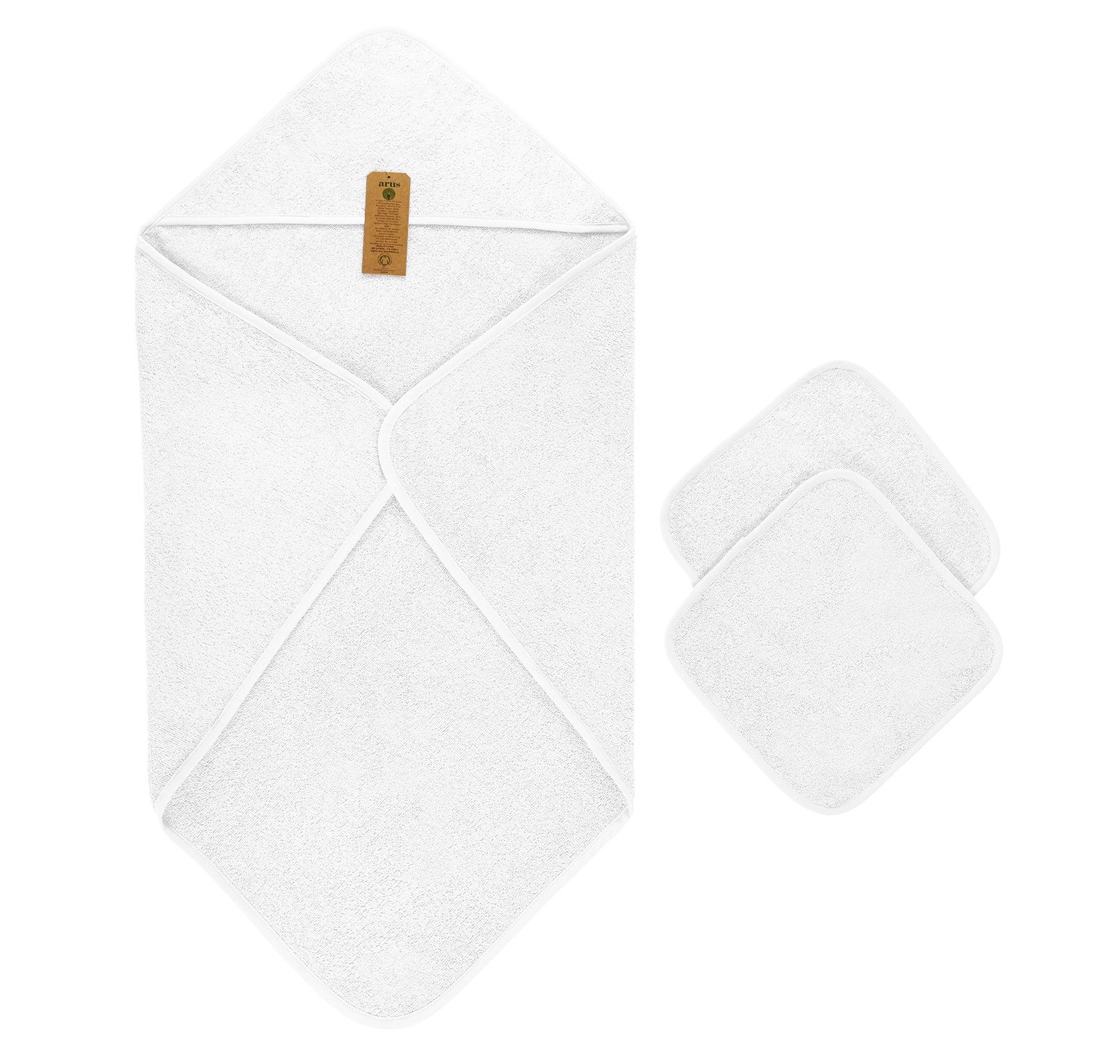 Verwöhnen Sie Ihr Baby nach dem Baden mit weichem Bio-Frottee: Das Set bietet sanfte Pflege und zuverlässigen Schutz.Sorgen Sie für entspannte Wohlfühlmomente nach jedem Bad: Das 3-teilige Kapuzentuch-Set aus 100 % Bio-Baumwolle (GOTS-zertifiziert) bietet alles, was empfindliche Babyhaut braucht. Das flauschige Frottee-Material nimmt Feuchtigkeit schnell auf und verwöhnt mit einer besonders soften Haptik. Die großzügig geschnittene Kapuze schützt den Kopf Ihres Babys vor Zugluft und hält es angenehm warm – ideal, um nach dem Baden oder Schwimmen schnell Geborgenheit zu schenken. Zwei praktische Waschlappen im Format 30 × 30 cm ergänzen das Set: Sie eignen sich sowohl zum sanften Waschen als auch zum Abtrocknen oder als kleine Helfer für unterwegs. Das reine Weiß unterstreicht die natürliche Qualität und passt harmonisch in jedes Badezimmer. Pflegeleicht und robust, ist das Set maschinenwaschbar bis 90 °C und bleibt dauerhaft formstabil und weich – auch nach häufigem Waschen. Damit bietet dieses Set nachhaltigen Komfort, auf den Sie sich verlassen können.