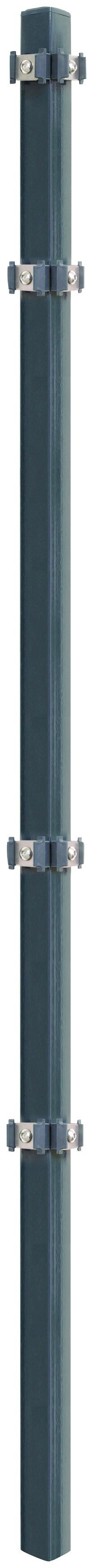 Der Eckpfosten aus verzinktem Metall ist durch Phosphatierung und Pulverbeschichtung optimal gegen Rost geschützt. Er eignet sich für einen klassischen Gartenzaun aus Einzel- oder Doppelstabmatten und wird inklusive Halterungen und Befestigungsmaterial geliefert.