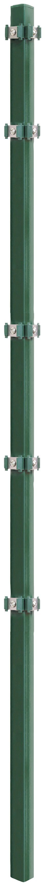 Der Eckpfosten aus verzinktem Metall ist durch Phosphatierung und Pulverbeschichtung optimal gegen Rost geschützt. Er eignet sich für einen klassischen Gartenzaun aus Einzel- oder Doppelstabmatten und wird inklusive Halterungen und Befestigungsmaterial geliefert.
