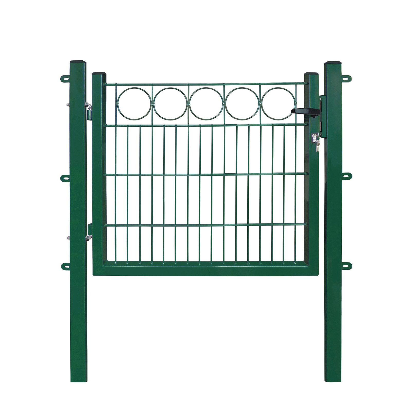 Erhältlich sind die einflügeligen Gartentore in den Designs „Ring“ und „Karo“ sowie in den Höhen 80, 100 und 120 cm.