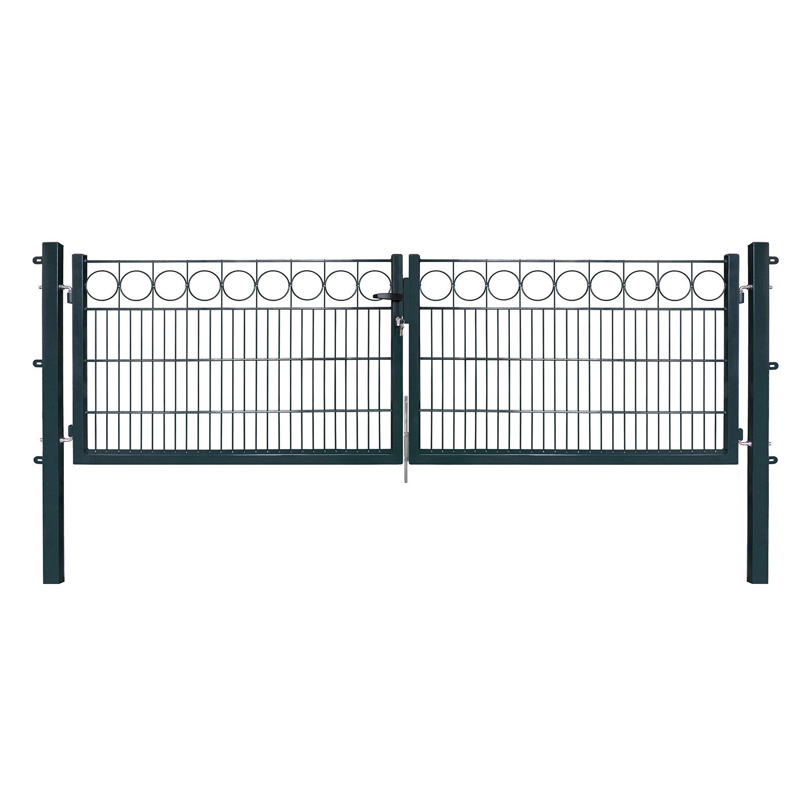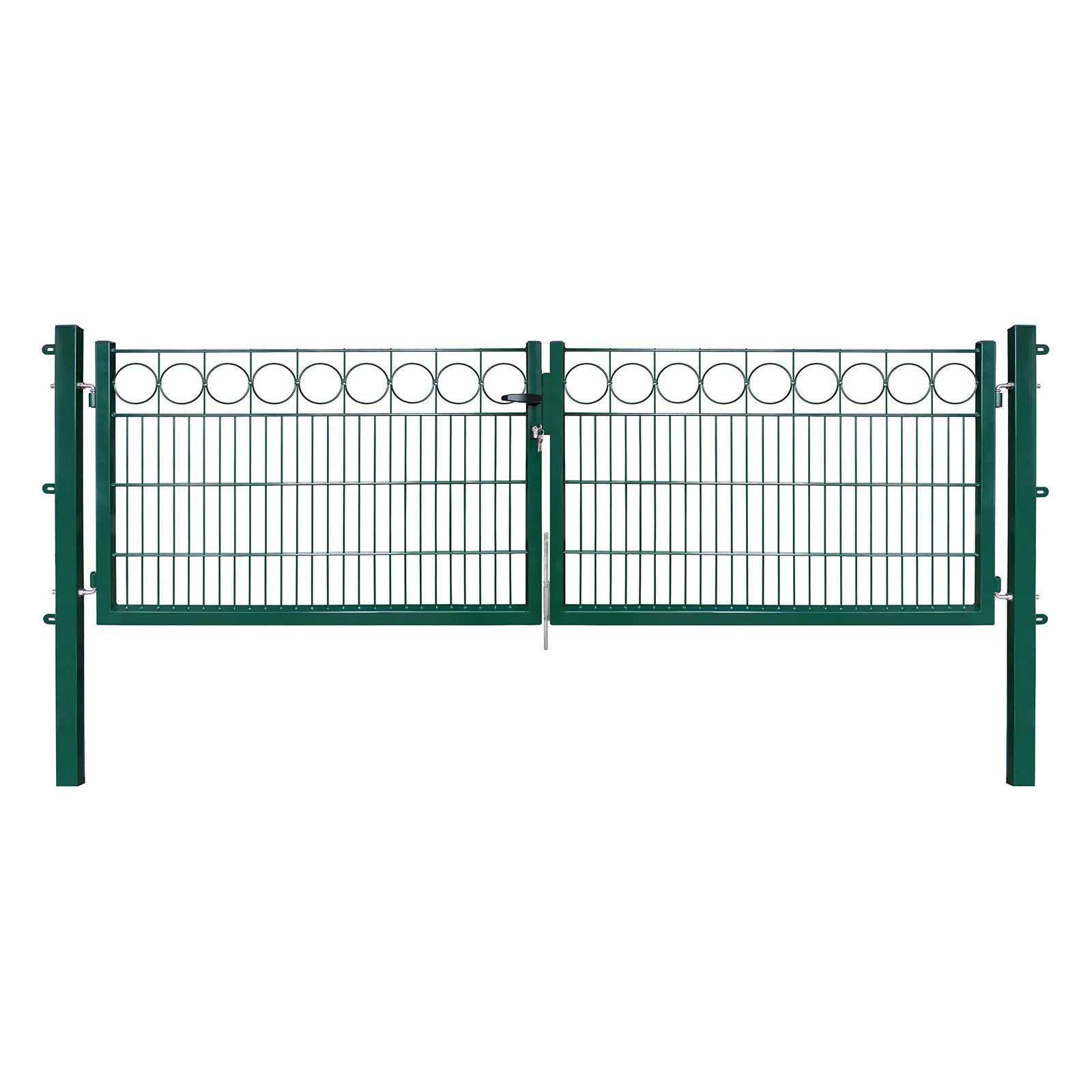 Erhältlich sind die zweiflügeligen Doppeltore in den Designs „Ring“ und „Karo“ sowie in den Höhen 80, 100 und 120 cm.