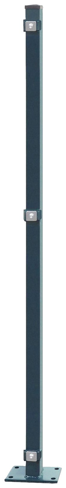 Der Eckpfosten aus verzinktem Metall ist durch Phosphatierung und Pulverbeschichtung optimal gegen Rost geschützt. Er eignet sich für einen klassischen Gartenzaun aus Einzel- oder Doppelstabmatten und wird inklusive Halterungen und Befestigungsmaterial geliefert.
