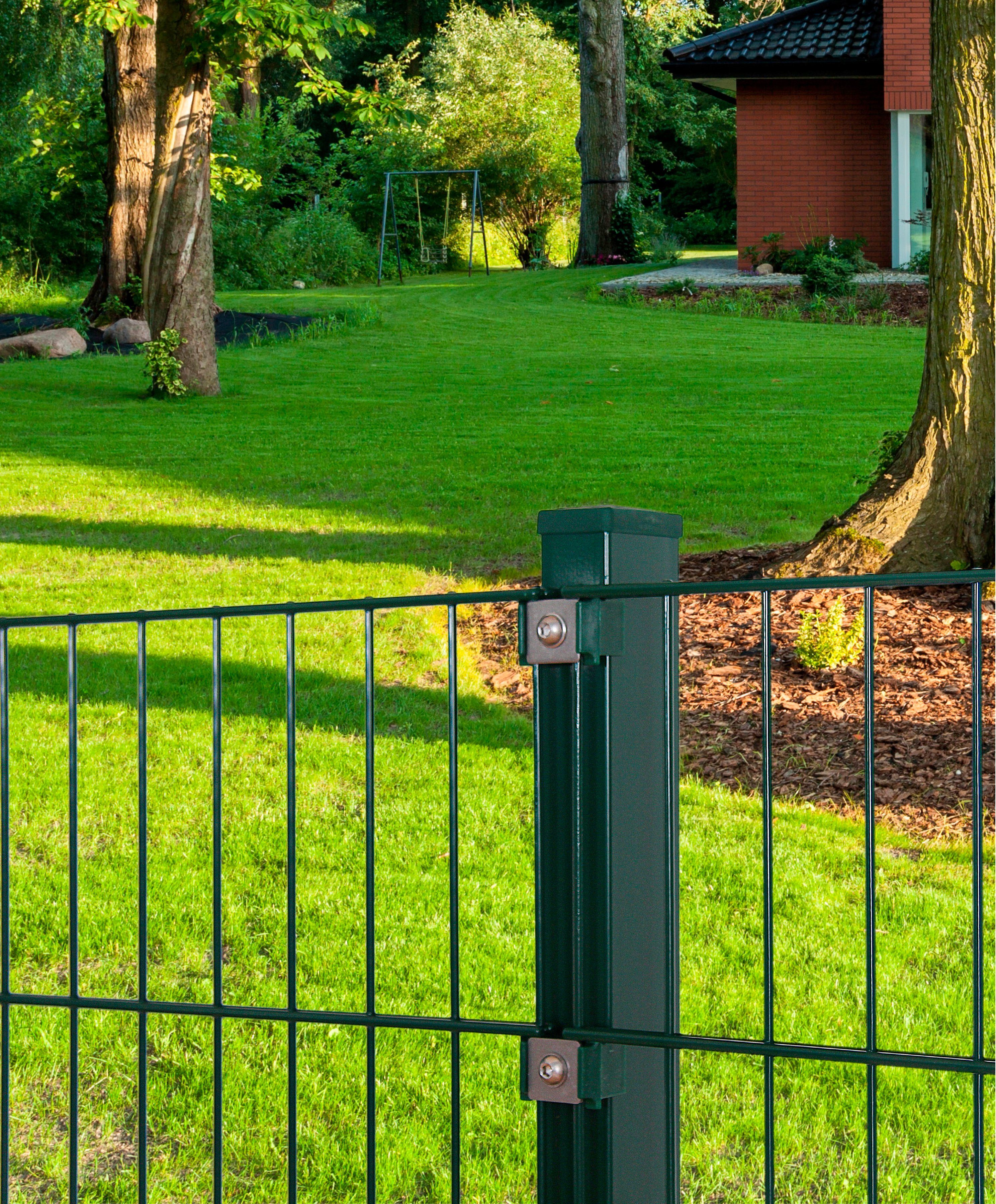 Der Eckpfosten aus verzinktem Metall ist durch Phosphatierung und Pulverbeschichtung optimal gegen Rost geschützt. Er eignet sich für einen klassischen Gartenzaun aus Einzel- oder Doppelstabmatten und wird inklusive Halterungen und Befestigungsmaterial geliefert.