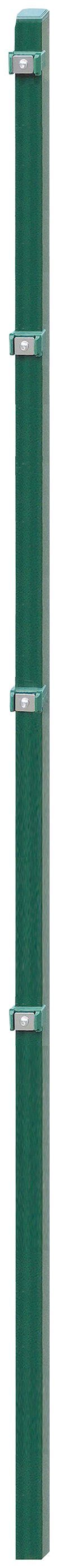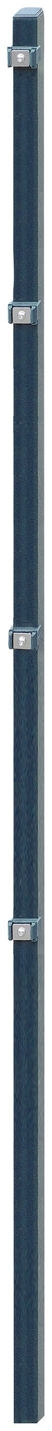 Der Eckpfosten aus verzinktem Metall ist durch Phosphatierung und Pulverbeschichtung optimal gegen Rost geschützt. Er eignet sich für einen klassischen Gartenzaun aus Einzel- oder Doppelstabmatten und wird inklusive Halterungen und Befestigungsmaterial geliefert.