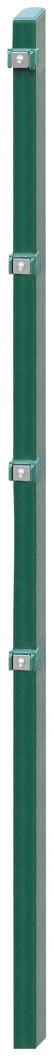 Der Eckpfosten aus verzinktem Metall ist durch Phosphatierung und Pulverbeschichtung optimal gegen Rost geschützt. Er eignet sich für einen klassischen Gartenzaun aus Einzel- oder Doppelstabmatten und wird inklusive Halterungen und Befestigungsmaterial geliefert.