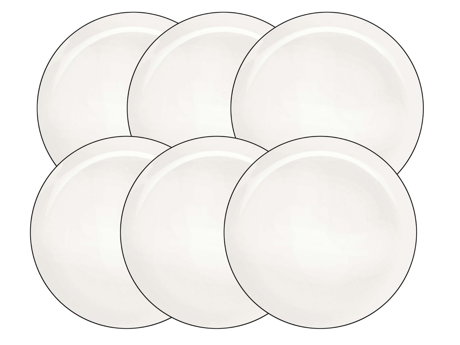 Jeder Teller ist aus erstklassigem Porzellan gefertigt, das für seine Robustheit und Langlebigkeit bekannt ist. Die makellos weiße Oberfläche wird durch einen feinen, schwarzen Linienrand akzentuiert, der den Tellern eine subtile, aber edle Note verleiht. Dieses zeitlose Design fügt sich harmonisch in jede Tischdekoration ein und verleiht ihr eine raffinierte Eleganz.