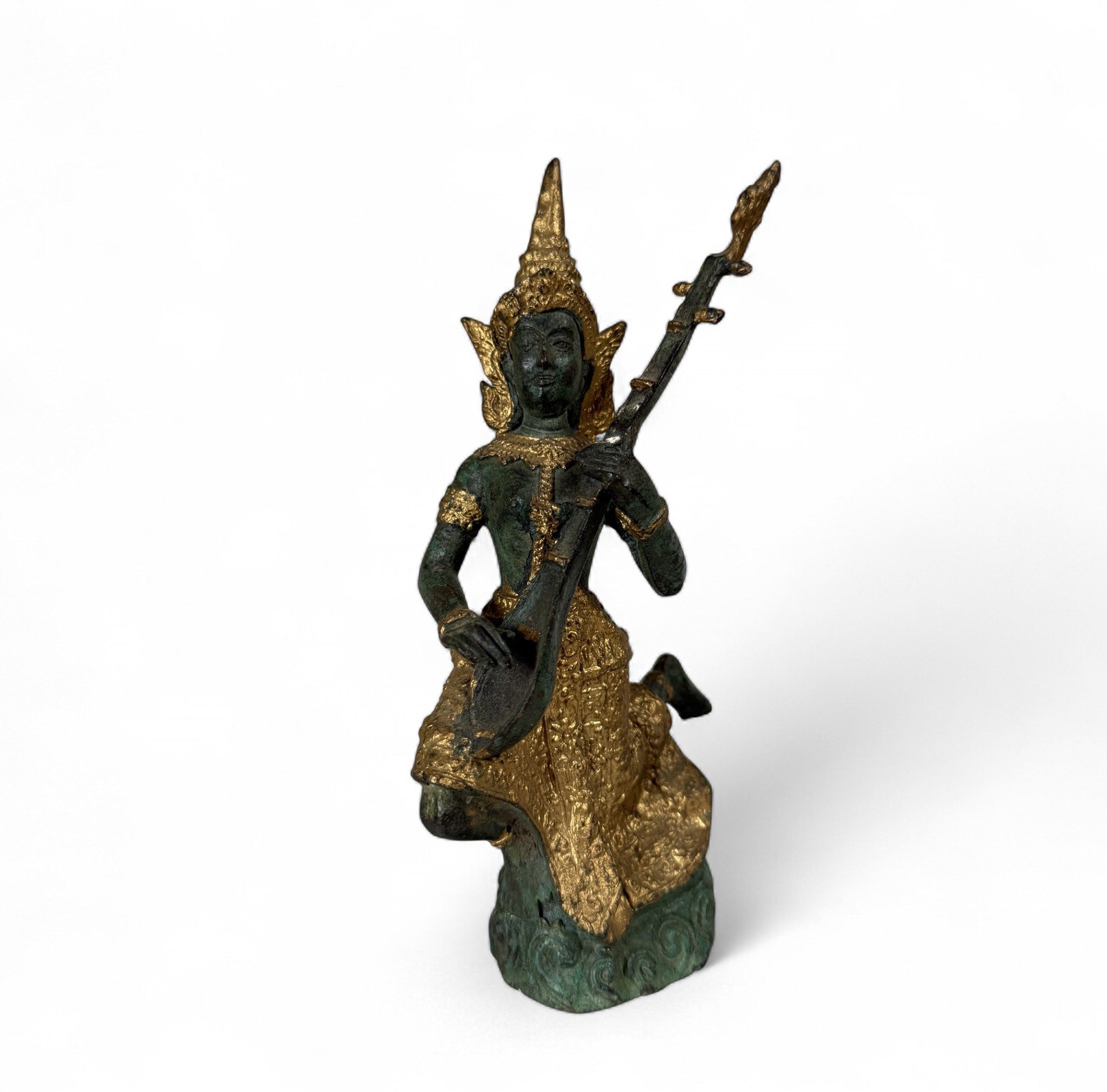 Die filigrane Tempelwächter Figur ist aus dem Haushalt eines Asienliebhabers und stammt ursprünglich aus Thailand. Das Alter der Bronzefigur schätzen wir auf ca. 50 Jahre.