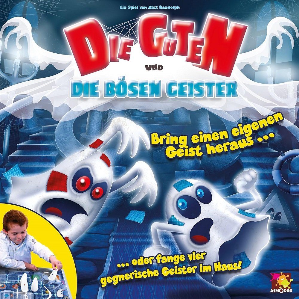 Strategiespielen - Einen seiner eigenen Geister auf die andere Seite durch eine Tür bringt.- Jedes Jahr tragen die Geister,die in dem berühmten Herrenhaus spuken,aufs Neue einen Wettkampf aus. Im alten Herrenhaus gehen die Geister um! Jedes Jahr treffen sie sich zum Spukwettkampf im Gemäuer. In zwei Mannschaften, jede mit vier guten und vier bösen Geistern, treten sie gegeneinander an. Wettbewerbs sind Bring einen eingenen Geis heraus oder fange vier gegnerische Geister im Haus .Wer zuerst einen guten Geist aus dem Haus schafft oder vier gute Geister fängt, gewinnt. Doch Vorsicht vor den bösen Geistern - sie zu fangen kann schaurige Folgen haben.