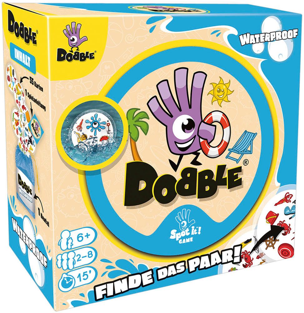 Dobble macht so viel Spaß, dass man es überall spielen will. Und mit der Waterproof-Version kann man das sogar im und am Wasser. Ihr könnt Dobble Waterproof überall spielen, denn die abweisenden Karten mit Strandsymbolen sind sand- und wasserfest. In seinem leichten Beutel steht Spielrunden im Schwimmbad, am Strand oder in der Wanne nichts mehr im Weg! Spielt mit Dobble Waterproof alle gleichzeitig und wählt eine von fünf verschiedenen Spielvarianten. Egal für welche Варианты ihr euch entscheidet, es geht immer darum, als Erster das Symbol zu finden, das auf zwei Karten übereinstimmt, und es dann laut zu benennen. Aber Achtung: Form und Farbe eines Symbols sind immer gleich, doch die Размер kann unterschiedlich sein. Auf einmal scheint ein kleines Seepferdchen ganz anders auszusehen als ein großes. Dobble Waterproof wird mit weniger Plastik und Papier aus zertifizierter Waldwirtschaft.