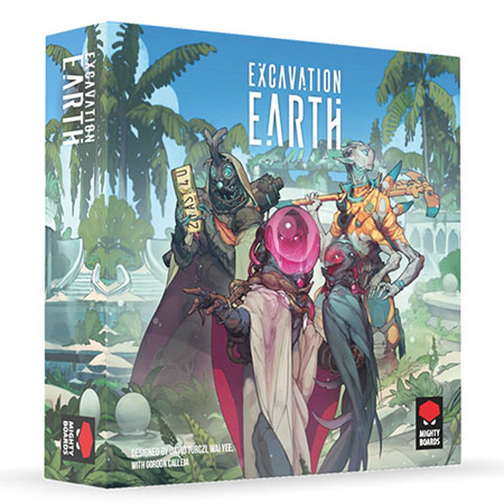 Im 42. Jahr nach der Vereinigung machte ein Alien names Eolus Rein eine Entdeckung, wie sie die freien Spezies noch nie zuvor gesehen hatten: Einen ganzen, bisher unbekannten Planeten, der mit den Überresten einer verlorenen Zivilisation übersät war. Bald kamen Entdecker, Händler und eifrige Käufer auf den leeren Planeten und konkurrierten darum, die perfekte Sammlung an fremdartigen Artefakten zusammenzustellen. Sie erfuhren bald, dass die Bewohner dieses zerstörten Planeten ihn... „Erde“ nannten. Schlüpft in die Rolle von archäologisch interessierten Aliens, welche die Hinterlassenschaften der Menschheit ausgraben, sammeln, schmuggeln und an die Meistbietenden versteigern. Excavation Earth verfügt über optimierte Regeln, die schon in zehn 10 Minuten verstanden sind. Durch die schwerwiegenden Entscheidungen in jeder Runde und die Interaktion der Spielerunde bietet es aber zugleich ein tiefgründiges Spielvergnügen. Dadurch ist das Spiel geeignet für Spiele-Neulinge, bietet erfahrenen Euro-Gamern aber auch eine Herausforderung.