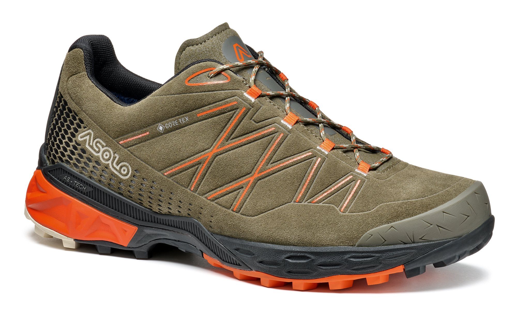 Das Obermaterial aus wasserabweisenden Velourleder bietet Schutz und Komfort, während das Futter aus Gore-Tex Extended Comfort Footwear wasserdicht und atmungsaktiv ist. Die Laufsohle besteht aus einer mono density EVA Zwischensohle, die für Stabilität, Halt, Komfort und Dämpfung sorgt. Die AS-Tech Technologie wurde entwickelt und implementiert, um Struktur und Torsionsstabilität zu bieten. Die Asolo Cross Laufsohle hat ein selbstreinigendes Design und dank der Sigma Grip Mischung hat der Tahoe LTH GTX beste Traktion und Griffigkeit. TPU Kappe für zusätzlichen Schutz, die thermogeformte Zunge und die Bandschnürung bieten eine optimale Passform.