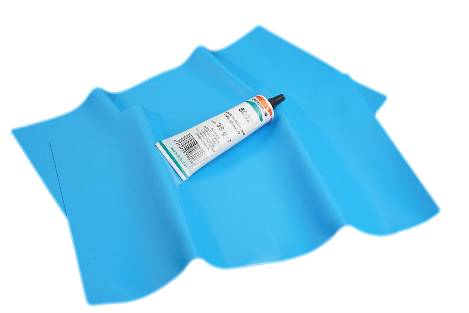 Fluidra Schwimmbadfolien Reparatur-Set mit blauen 2x 0,60mm starken Folienstücken inkl Kleber a 38 gr