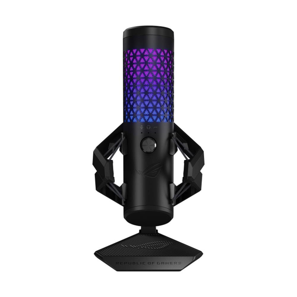Das professionelle Kondensator-Gaming-Mikrofon mit Nierencharakteristik verfügt über eine 25-mm-Kondensatorkapsel in Studioqualität, eine Abtastrate von 192 kHz / 24 Bit, einen Hochpassfilter, einen eingebauten Pop-Filter, eine hochwertige Metallhalterung und ASUS Aura Sync RGB-Beleuchtung.