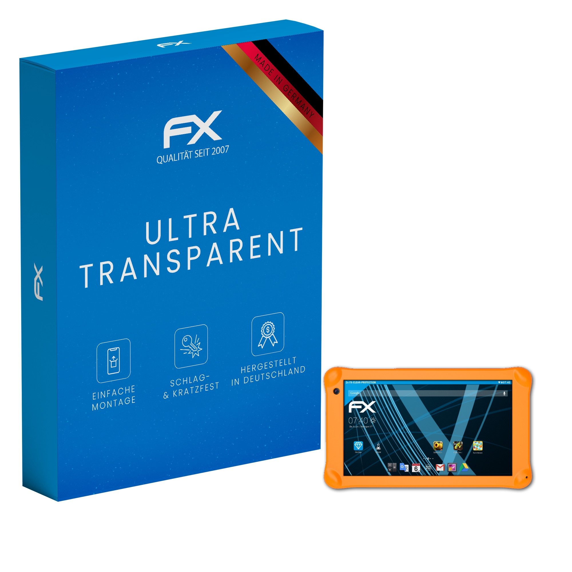 Lieferumfang | 2 x FX-Clear Folie kompatibel mit Positivo Twist Tab Kids (T770KC), Reinigungstuch, Montagewerkzeug (Rakel), Link zur mehrsprachigen, bebilderten Montageanleitung (inkl. Montagevideo), Bei Geräten mit mehreren Displays (z.B. Innen- und Außendisplay), ist für jedes Display eine Schutzfolie in der Verpackung enthalten. |