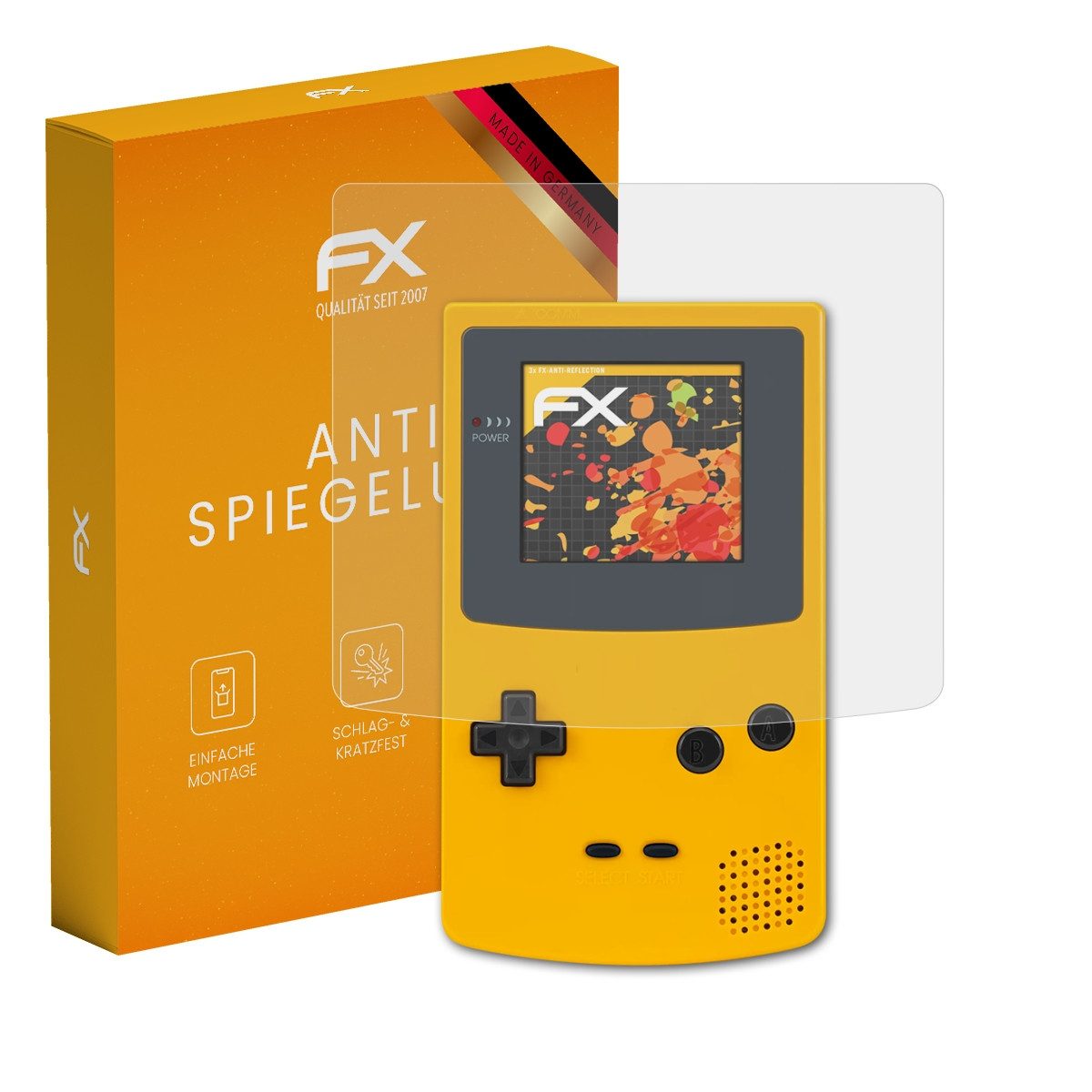 Lieferumfang | 3 x FX-Antireflex Schutzfolie kompatibel mit Nintendo Game Boy Color, Reinigungstuch, Montagewerkzeug (Rakel), Link zur mehrsprachigen, bebilderten Montageanleitung (inkl. Montagevideo), Bei Geräten mit mehreren Displays (z.B. Innen- und Außendisplay), ist für jedes Display eine Schutzfolie in der Verpackung enthalten. |