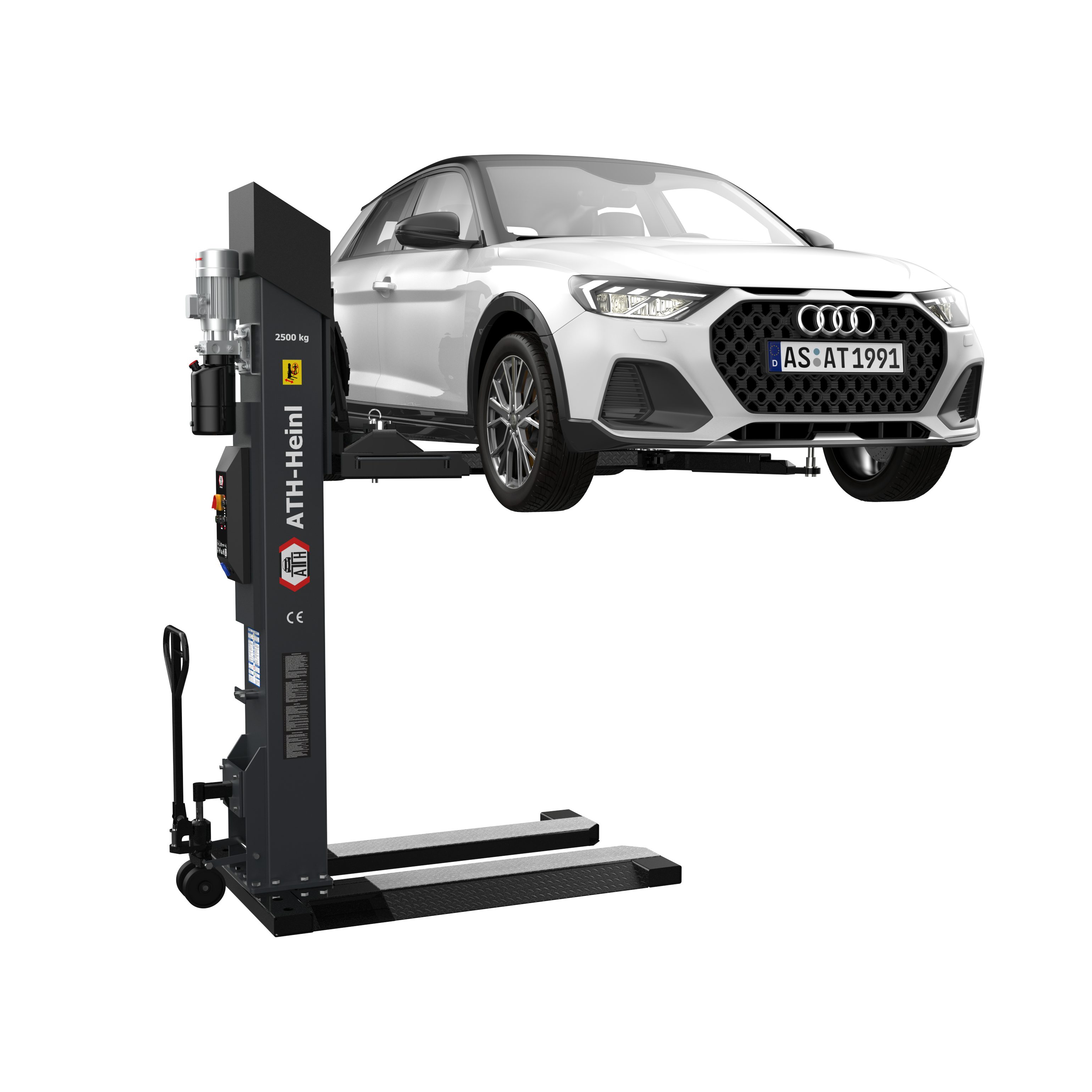 Elektrohydraulische 1-Säulen-Hebebühne mit Schnellhub-Aggregat und lastabhängiger Senkfunktion
