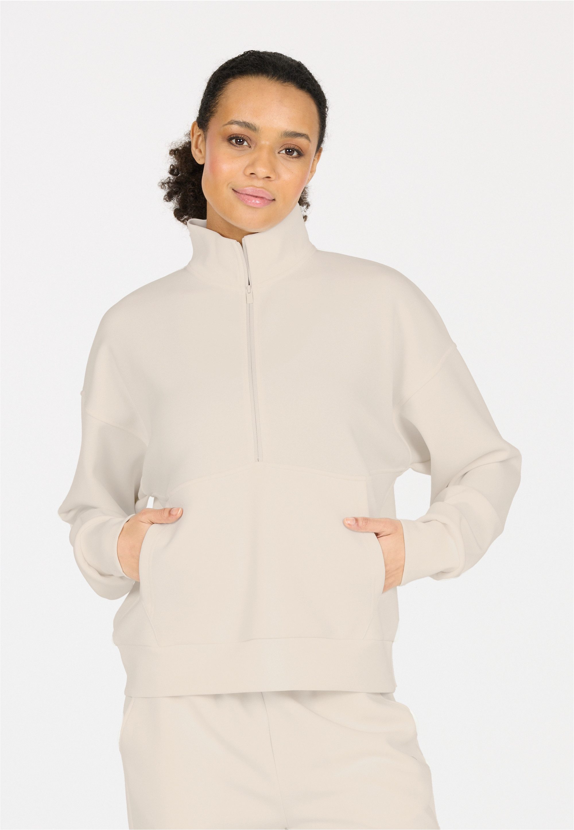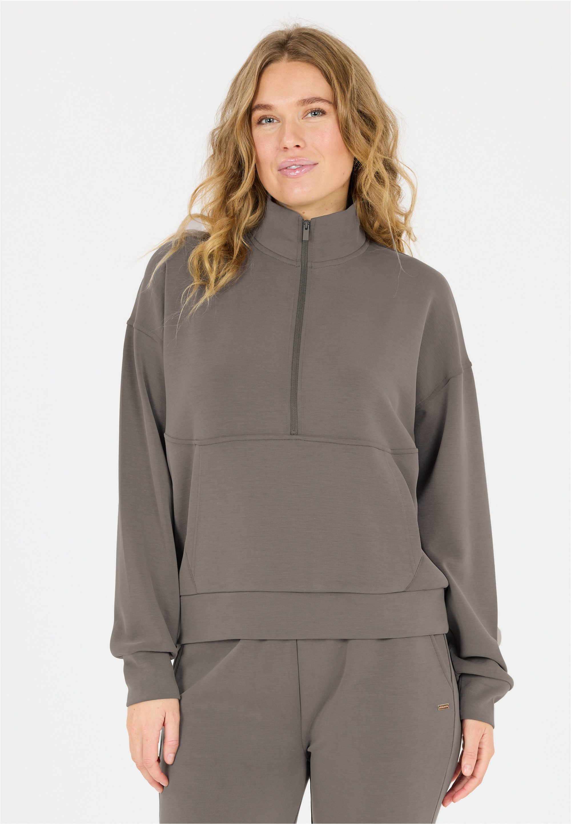 Das Sweatshirt Jillnana von Athlecia verbindet lässigen Stil mit funktionalem Komfort – perfekt für Frauen, die in Bewegung bleiben wollen. Der weiche Materialmix aus 51% Polyester, 44% Modal und 5% Elasthan fühlt sich angenehm auf der Haut an und bietet dank seiner dehnbaren Eigenschaften volle Bewegungsfreiheit. Der sportliche Halbreißverschluss verleiht dem Look eine moderne Note und ermöglicht dir eine flexible Belüftung, während die praktische Vordertasche Platz für Kleinigkeiten bietet oder einfach zum Händewärmen einlädt. Mit seiner bequemen Passform begleitet dich Jillnana entspannt durch Alltag, Freizeit oder dein nächstes Warm-up.