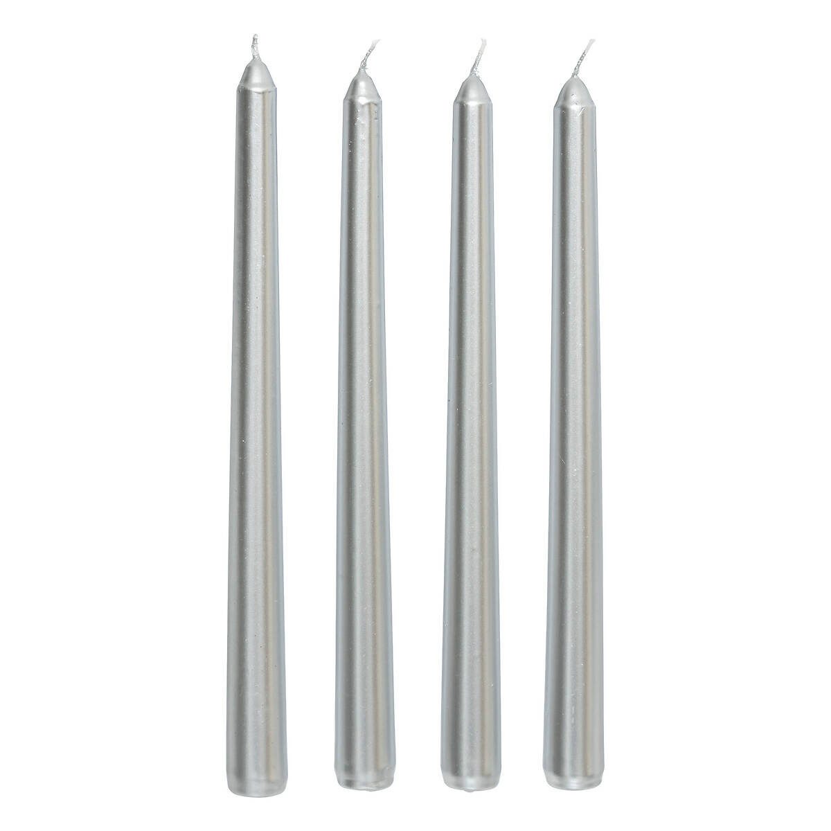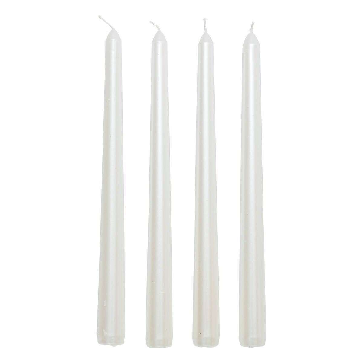 • Set aus satinierten Kerzen: Set aus vier eleganten Kerzen mit einer Höhe von 25 cm, ideal zur Dekoration von Innenräumen und zur Schaffung einer stimmungsvollen Atmosphäre.
