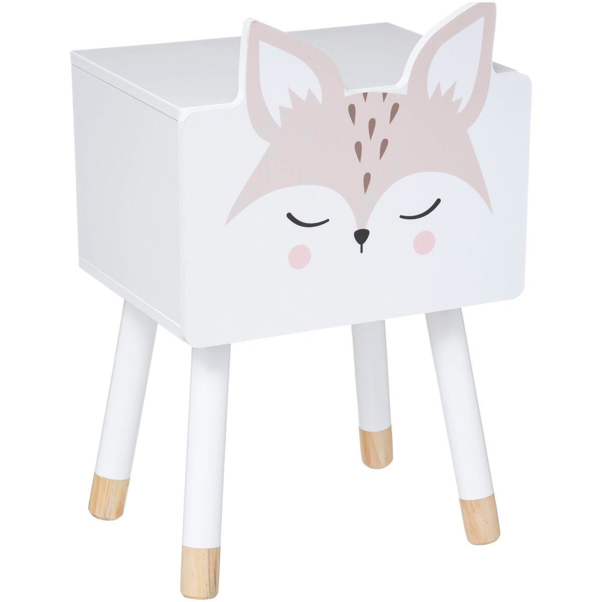 Der Kinder-Nachttisch LISEK mit Füßen aus Kiefernholz, 53 cm von Atmosphera for kids Company ist für den Innenbereich konzipiert. Ein bezauberndes Bild eines Lecks wurde an der Schranktür angebracht. Der Nachttisch ist für die Selbstmontage konzipiert. Aus der Möbelserie mit Lisk gibt es auch: Hochstuhl, Bank und Tisch.