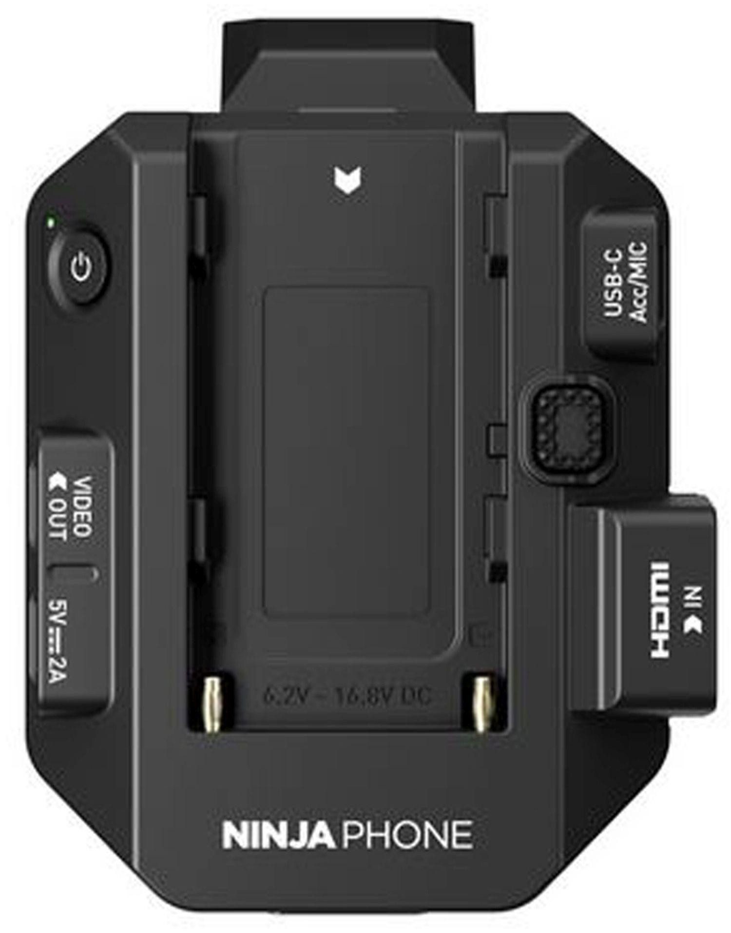 Der Ninja Phone ist ein 10-Bit-Video-Coprozessor, der speziell für das iPhone 15 Pro/Max entwickelt wurde. Mit diesem Gerät können Sie professionelle HDMI-Kameras direkt mit Ihrem iPhone verbinden und hochwertige Videos in Apple ProRes und H.265 aufzeichnen. Produktbilder zeigen optionales Zubehör und Anwendungsbeispiele.