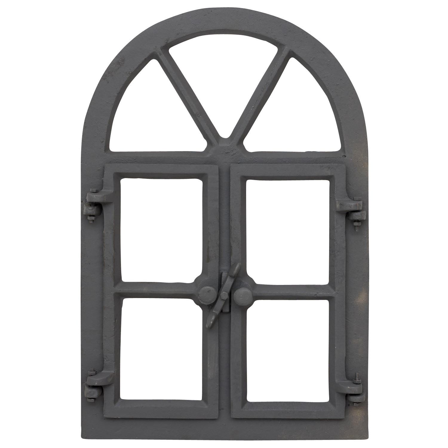 Wunderschönes Scheunenfenster, nach historischem Vorbild aus Gusseisen gefertigt. Das Fenster kann geöffnet werden und wird ohne Verglasung geliefert. Es ist für die verschiedensten Zwecke geeignet. Zum Beispiel wäre es passend für alte Gebäude wie Scheunen, Gartenhütten oder Mauern. Als Gitter könnte man es ebenfalls nutzen und natürlich eignet sich das schöne Stück auch zur Dekoration. Falls Sie das Fenster verglasen möchten, ist dies mit etwas Geschick in Eigenregie möglich. Rückseitig können Sie das von Ihnen zugeschnittene Glas in die entsprechenden Aussparungen einkleben. Sogar als Spiegel könnten Sie das Fenster nutzen, indem Sie Spiegelglas verwenden. Sollte das graue Finish nicht zu Ihrem Verwendungsort passen, können Sie das Fenster in der gewünschten Farbe lackieren. Dazu müssen Sie es etwas abschleifen und dann mit einem passenden Lack streichen. Es gibt also unzählige Möglichkeiten, wie Sie das dekorative Fenster in Szene setzen können. Die Maße lauten wie folgt: 38 x 57,5 x 5cm (B x H x T). Das Gewicht beträgt 11kg.