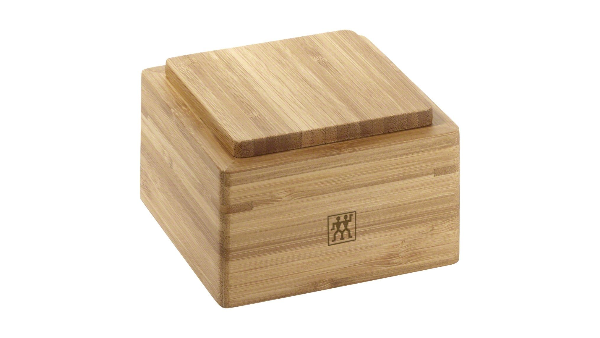 willing Box 60 mm, Bambus Aufbewahrung Clever organisierte Küchenaufbewahrung ist einfacher, als Sie denken! Suchen Sie während des Kochens nicht lange nach den richtigen Küchenkräutern, lagern Sie Salz, Pfeffer oder trockene Gewürze in der praktischen Box aus stabilem und natürlichem Bambus. Das robuste Material besticht vor allem durch Langlebigkeit und stilvolle Optik. Somit erfüllt die Aufbewahrungsbox nicht nur einen praktischen Zweck, sie ist auch äußerst dekorativ. Unser Tipp: Stellen Sie die 60 mm große Box immer griffbereit auf Ihre Arbeitsfläche, sodass Sie schnell zugreifen können. Besonders praktisch: Die Aufbewahrungsbox mit Deckel gehört zu der Serie Storage von ZWILLING und lässt sich mit zusätzlichen Elementen erweitern. Bei Bedarf können Sie mehrere Boxen stapeln und sparen so viel Platz auf Ihrer Arbeitsfläche. Zum Aufbewahren von Salz, Pfeffer, getrockneten Kräutern und Gewürzen Erweiterbar und stapelbar Aus Naturmaterial Bambus