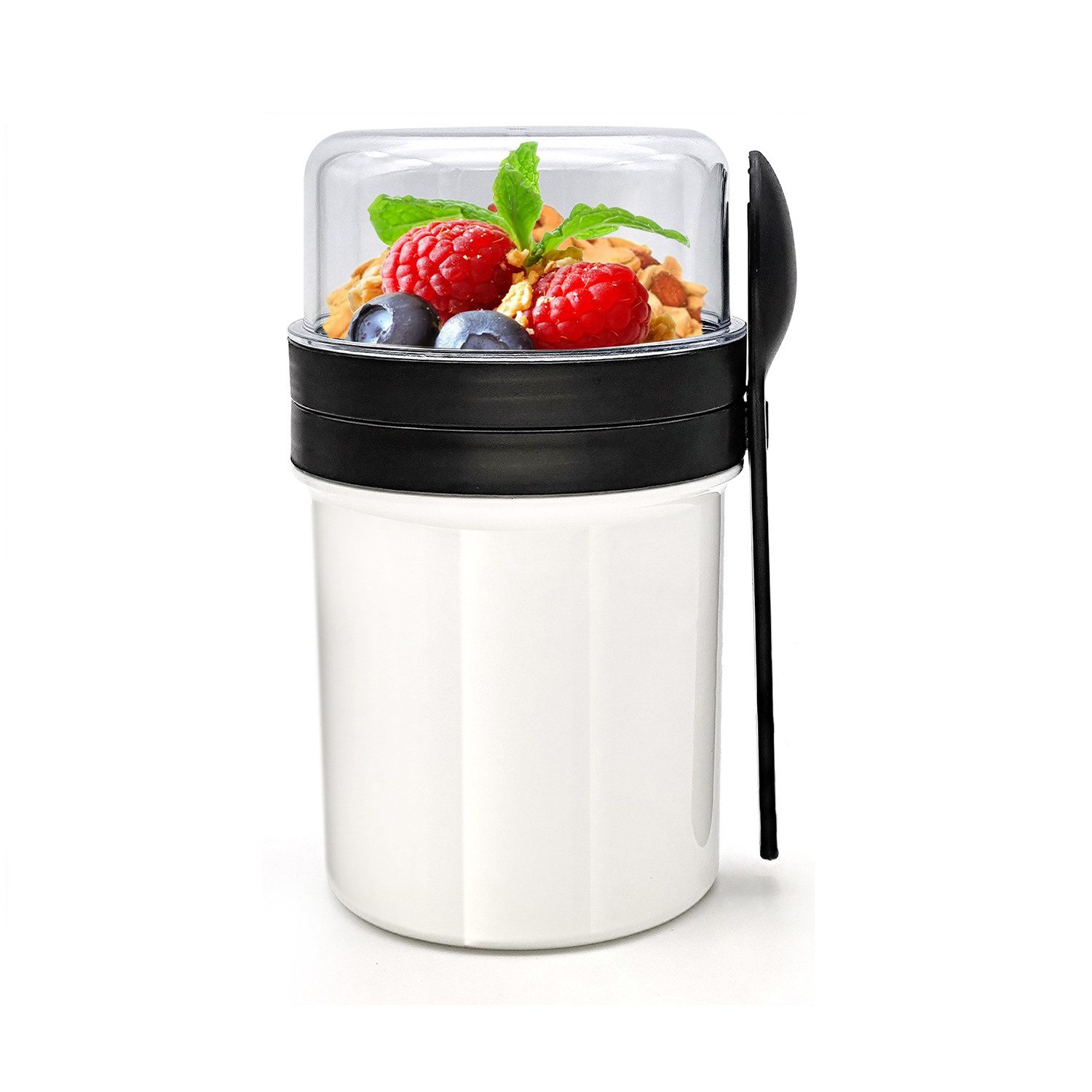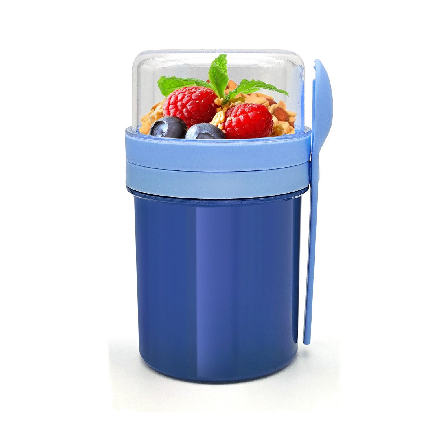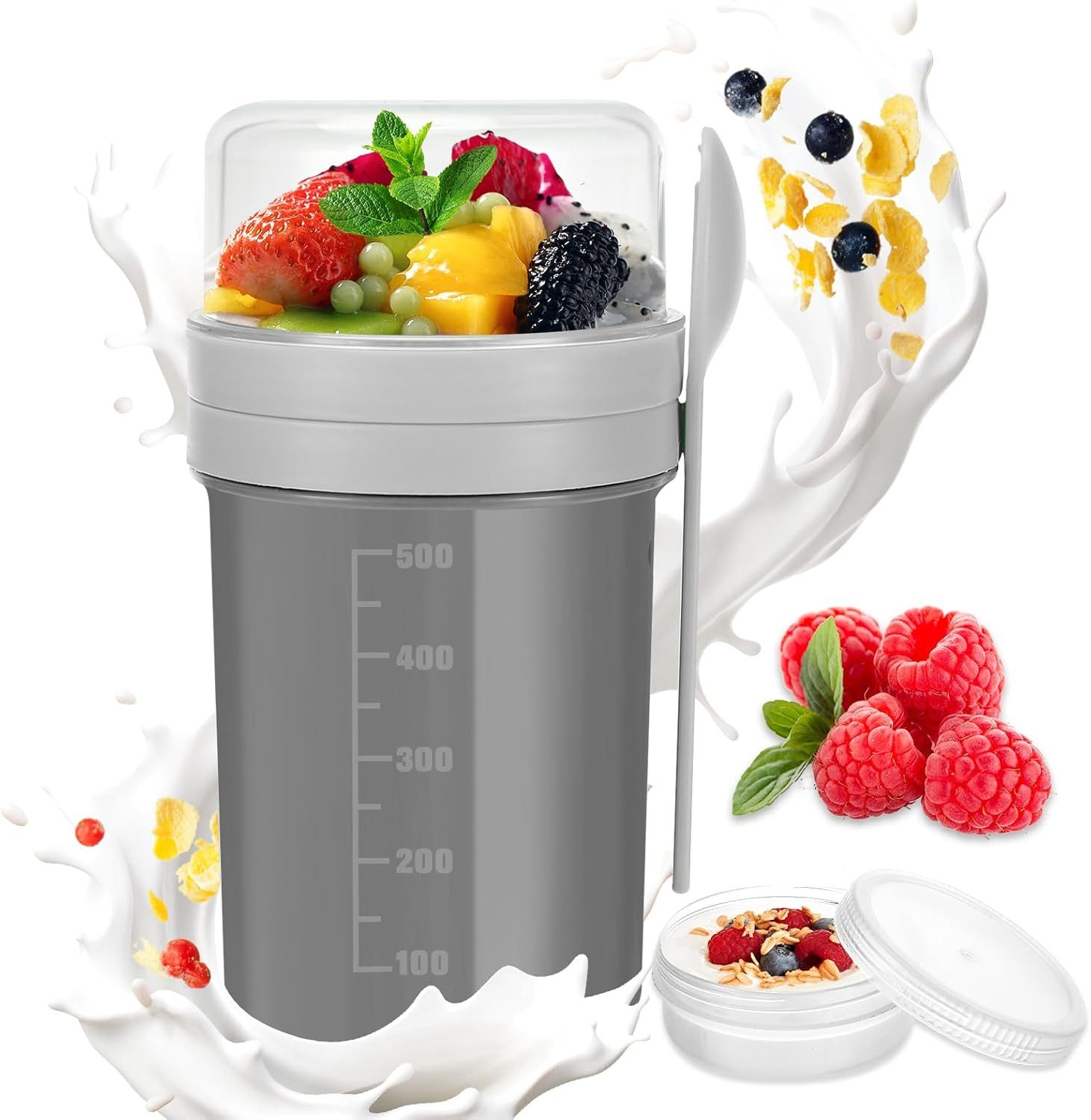 Dieser innovative Müsli-to-go-Becher bietet mit seinem zweischichtigen Design die perfekte Lösung für eine gesunde Mahlzeit unterwegs. Der untere Behälter fasst 450 ml und eignet sich ideal für Joghurt oder Haferbrei, während die obere 250 ml-Kammer Platz für Toppings wie Müsli, Nüsse oder Obst bietet. Ein versiegeltes Mittelteil trennt beide Kammern zuverlässig, sodass Geschmack und Konsistenz erhalten bleiben.