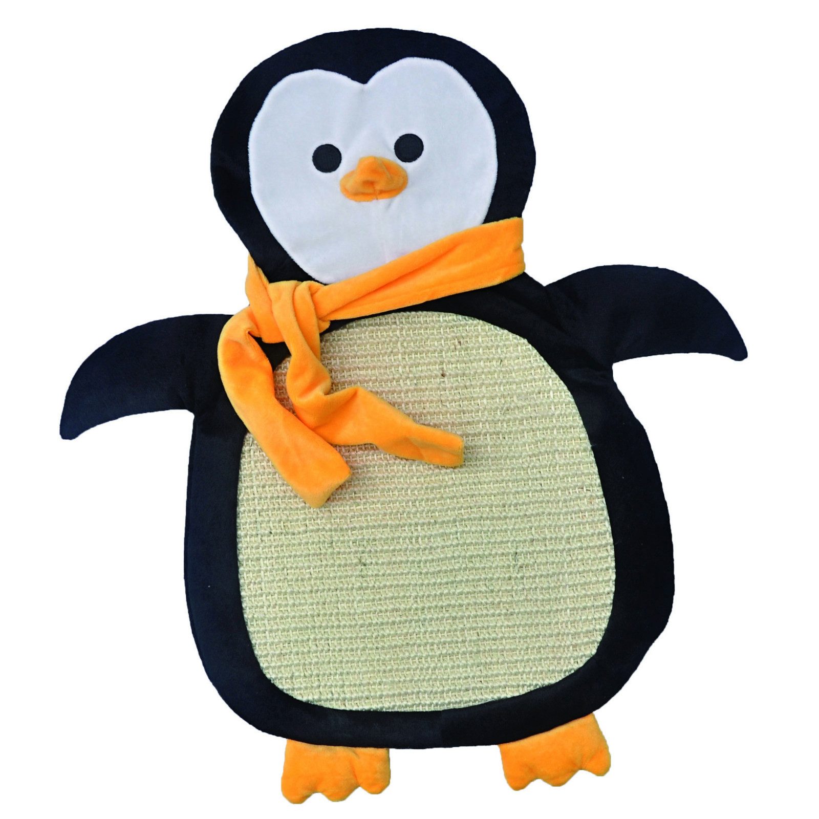 Das Kratzbrett Schmuse-Pinguin mit Katzenminze stellt einen witzigen Pinguin aus Plüsch mit niedlichem gelben Schal dar, dessen Flügel mit Katzenminze gefüllt sind und der Katze somit einen Extrareiz bietet.